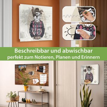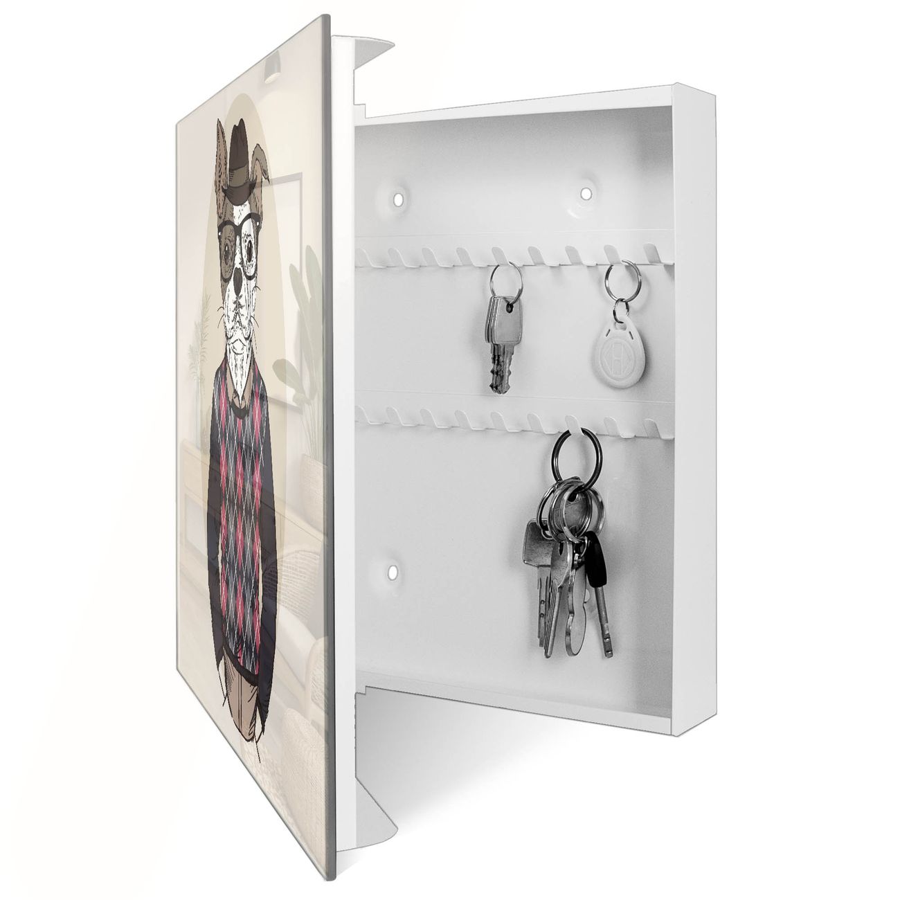 Bringe Ordnung und Eleganz in deinen Eingangsbereich mit dem banjado Schlüsselkasten Motiv Motiv Ludger. Die moderne Schlüsselbox kombiniert funktionales Design mit hochwertiger Verarbeitung und wird so zu einem echten Hingucker in Flur, Büro oder Ferienwohnung. ✅ Stilvolle Schlüsselaufbewahrung mit Glasfront im Motiv Motiv Ludger Der Design-Schlüsselkasten Motiv Motiv Ludger bietet Platz für bis zu 50 Schlüssel, die auf 5 stabilen Reihen mit je 10 Haken übersichtlich verstaut werden. Mit seinen kompakten Maßen von 30 x 30 x 5 cm passt die Schlüsselbox perfekt auch in kleinere Räume. Der weiß lackierte Stahlkorpus mit rechts angeschlagenem Türscharnier harmoniert mit der Glasfront und fügt sich nahtlos in jedes Wohnambiente ein. Ob als Schlüsselorganizer für Zuhause oder als praktische Lösung für Büros, Praxen und Gewerbe, der banjado Schlüsselkasten sorgt für Ordnung und Übersicht. Dank der magnetischen, mit Kreidestiften beschreibbaren Glasfront kannst du Notizen anheften oder Termine direkt auf der Oberfläche festhalten. Die Schlüsselbox Motiv Motiv Ludger zur Wandmontage wird inklusive Befestigungsmaterial geliefert und ist schnell angebracht. So hast du deine Schlüssel jederzeit griffbereit und zugleich stilvoll verstaut. Mit diesem banjado Schlüsselkasten Motiv Motiv Ludger kombinierst du praktische Aufbewahrung mit stilvollem Wohndesign. Ob privat oder geschäftlich, die Schlüsselbox sorgt für mehr Ordnung, Übersicht und ein wohnliches Ambiente.Vorteile im Überblick