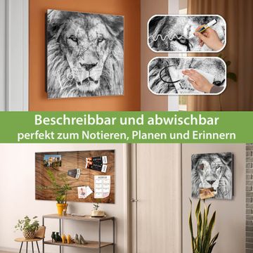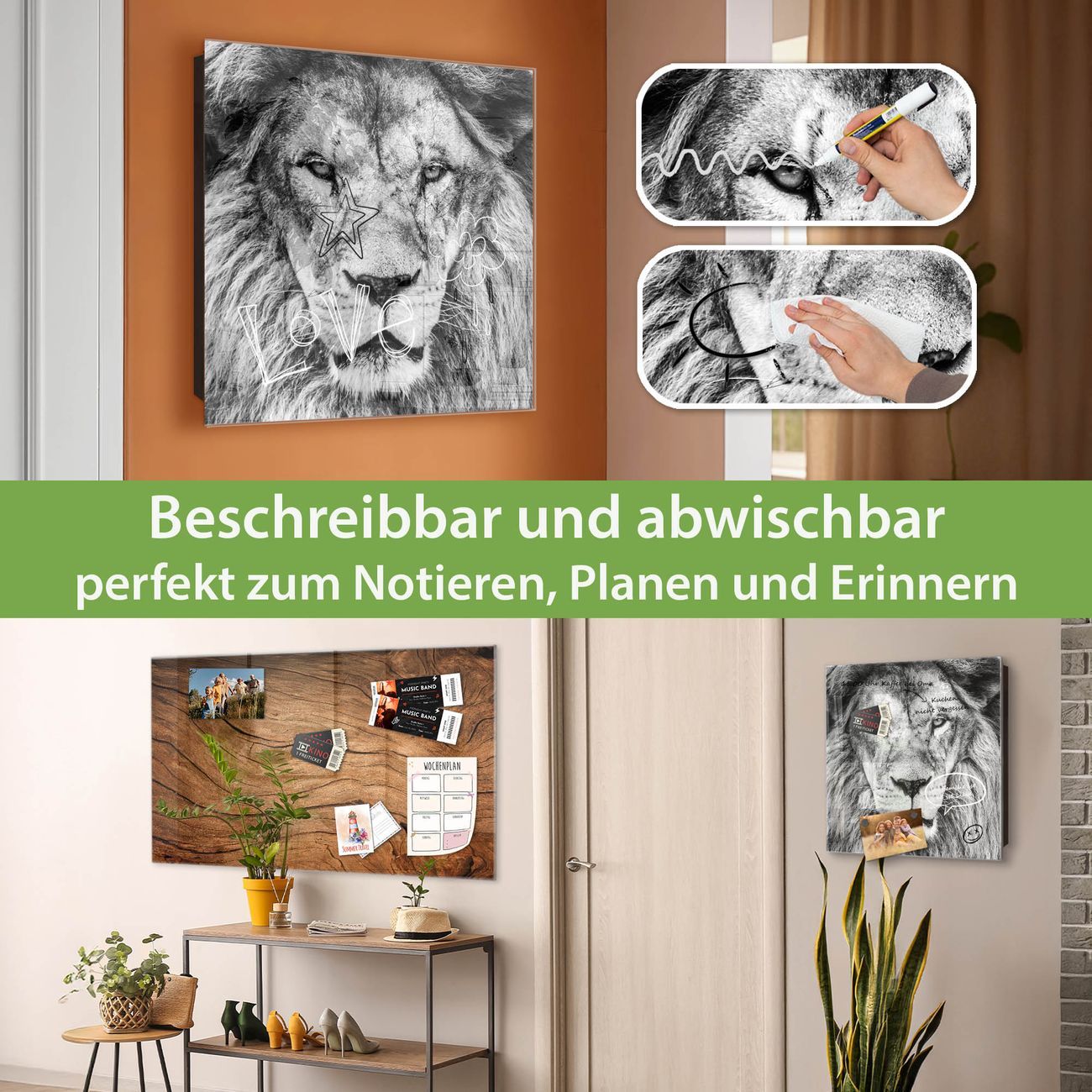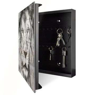 Bringe Ordnung und Eleganz in deinen Eingangsbereich mit dem banjado Schlüsselkasten Motiv Motiv Ludwig. Die moderne Schlüsselbox kombiniert funktionales Design mit hochwertiger Verarbeitung und wird so zu einem echten Hingucker in Flur, Büro oder Ferienwohnung. ✅ Stilvolle Schlüsselaufbewahrung mit Glasfront im Motiv Motiv Ludwig Der Design-Schlüsselkasten Motiv Motiv Ludwig bietet Platz für bis zu 50 Schlüssel, die auf 5 stabilen Reihen mit je 10 Haken übersichtlich verstaut werden. Mit seinen kompakten Maßen von 30 x 30 x 5 cm passt die Schlüsselbox perfekt auch in kleinere Räume. Der schwarz lackierte Stahlkorpus mit rechts angeschlagenem Türscharnier harmoniert mit der Glasfront und fügt sich nahtlos in jedes Wohnambiente ein. Ob als Schlüsselorganizer für Zuhause oder als praktische Lösung für Büros, Praxen und Gewerbe, der banjado Schlüsselkasten sorgt für Ordnung und Übersicht. Dank der magnetischen, mit Kreidestiften beschreibbaren Glasfront kannst du Notizen anheften oder Termine direkt auf der Oberfläche festhalten. Die Schlüsselbox Motiv Motiv Ludwig zur Wandmontage wird inklusive Befestigungsmaterial geliefert und ist schnell angebracht. So hast du deine Schlüssel jederzeit griffbereit und zugleich stilvoll verstaut. Mit diesem banjado Schlüsselkasten Motiv Motiv Ludwig kombinierst du praktische Aufbewahrung mit stilvollem Wohndesign. Ob privat oder geschäftlich, die Schlüsselbox sorgt für mehr Ordnung, Übersicht und ein wohnliches Ambiente.Vorteile im Überblick