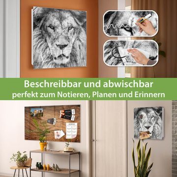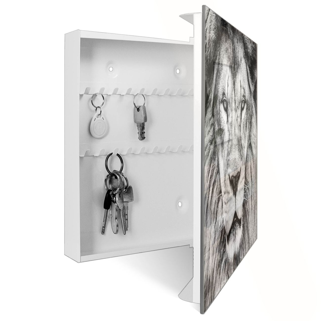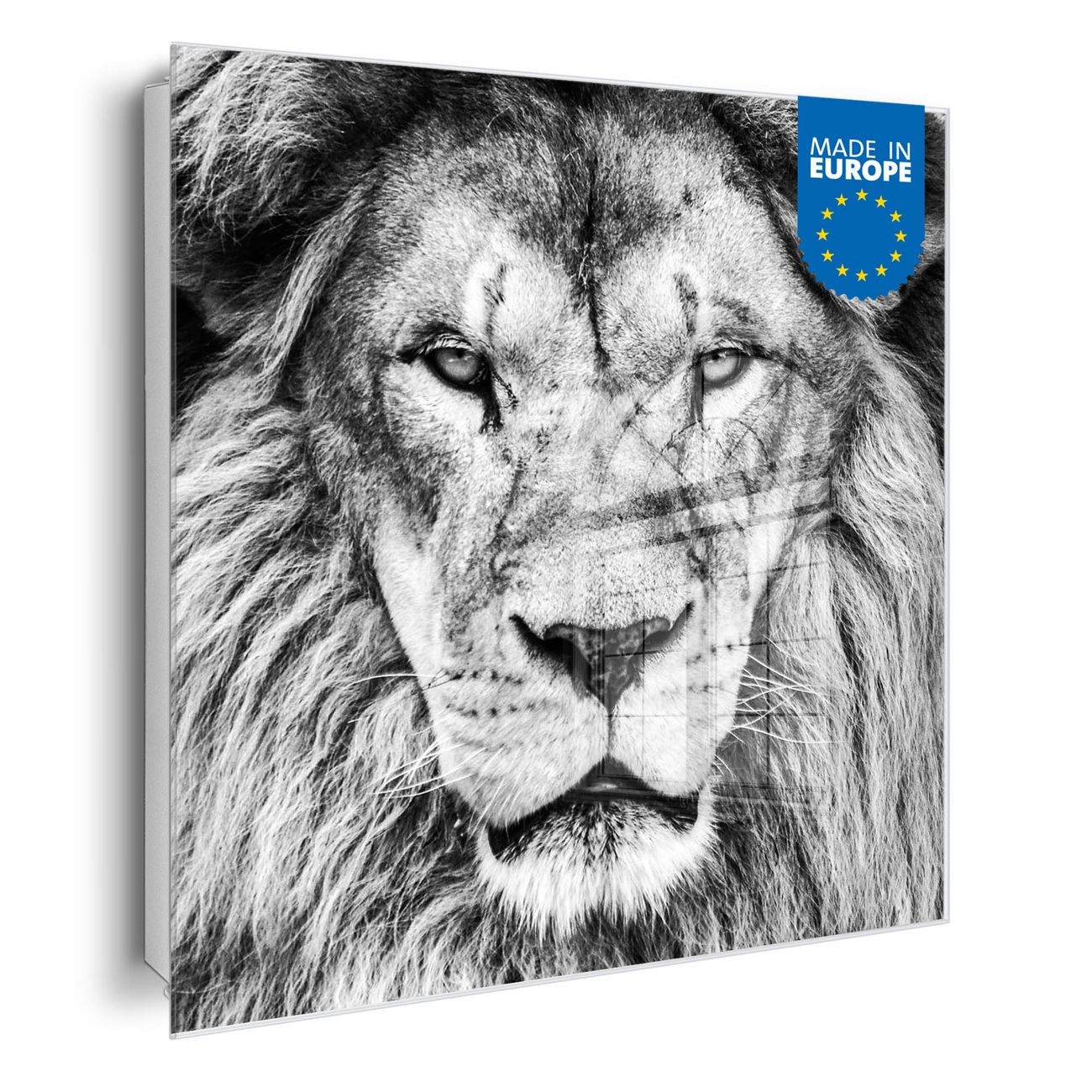 Bringe Ordnung und Eleganz in deinen Eingangsbereich mit dem banjado Schlüsselkasten Motiv Motiv Ludwig. Die moderne Schlüsselbox kombiniert funktionales Design mit hochwertiger Verarbeitung und wird so zu einem echten Hingucker in Flur, Büro oder Ferienwohnung. ✅ Stilvolle Schlüsselaufbewahrung mit Glasfront im Motiv Motiv Ludwig Der Design-Schlüsselkasten Motiv Motiv Ludwig bietet Platz für bis zu 50 Schlüssel, die auf 5 stabilen Reihen mit je 10 Haken übersichtlich verstaut werden. Mit seinen kompakten Maßen von 30 x 30 x 5 cm passt die Schlüsselbox perfekt auch in kleinere Räume. Der weiß lackierte Stahlkorpus mit rechts angeschlagenem Türscharnier harmoniert mit der Glasfront und fügt sich nahtlos in jedes Wohnambiente ein. Ob als Schlüsselorganizer für Zuhause oder als praktische Lösung für Büros, Praxen und Gewerbe, der banjado Schlüsselkasten sorgt für Ordnung und Übersicht. Dank der magnetischen, mit Kreidestiften beschreibbaren Glasfront kannst du Notizen anheften oder Termine direkt auf der Oberfläche festhalten. Die Schlüsselbox Motiv Motiv Ludwig zur Wandmontage wird inklusive Befestigungsmaterial geliefert und ist schnell angebracht. So hast du deine Schlüssel jederzeit griffbereit und zugleich stilvoll verstaut. Mit diesem banjado Schlüsselkasten Motiv Motiv Ludwig kombinierst du praktische Aufbewahrung mit stilvollem Wohndesign. Ob privat oder geschäftlich, die Schlüsselbox sorgt für mehr Ordnung, Übersicht und ein wohnliches Ambiente.Vorteile im Überblick