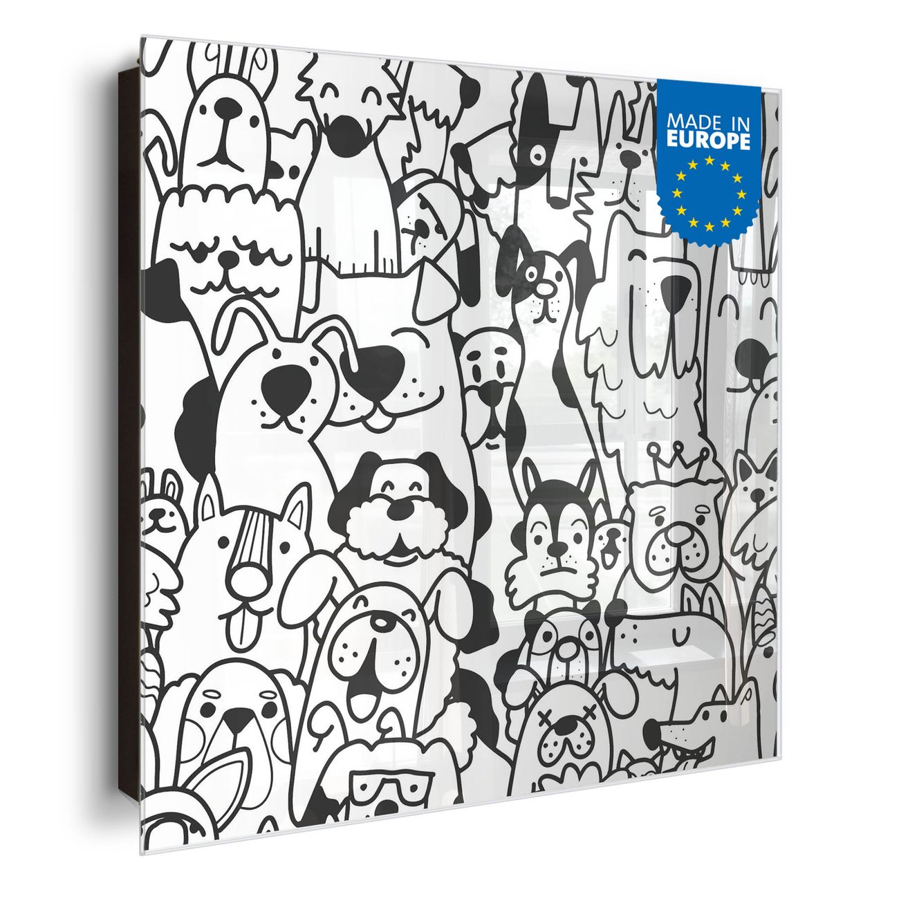 Bringe Ordnung und Eleganz in deinen Eingangsbereich mit dem banjado Schlüsselkasten Motiv Motiv Lustiges Hundemuster. Die moderne Schlüsselbox kombiniert funktionales Design mit hochwertiger Verarbeitung und wird so zu einem echten Hingucker in Flur, Büro oder Ferienwohnung. ✅ Stilvolle Schlüsselaufbewahrung mit Glasfront im Motiv Motiv Lustiges Hundemuster Der Design-Schlüsselkasten Motiv Motiv Lustiges Hundemuster bietet Platz für bis zu 50 Schlüssel, die auf 5 stabilen Reihen mit je 10 Haken übersichtlich verstaut werden. Mit seinen kompakten Maßen von 30 x 30 x 5 cm passt die Schlüsselbox perfekt auch in kleinere Räume. Der schwarz lackierte Stahlkorpus mit rechts angeschlagenem Türscharnier harmoniert mit der Glasfront und fügt sich nahtlos in jedes Wohnambiente ein. Ob als Schlüsselorganizer für Zuhause oder als praktische Lösung für Büros, Praxen und Gewerbe, der banjado Schlüsselkasten sorgt für Ordnung und Übersicht. Dank der magnetischen, mit Kreidestiften beschreibbaren Glasfront kannst du Notizen anheften oder Termine direkt auf der Oberfläche festhalten. Die Schlüsselbox Motiv Motiv Lustiges Hundemuster zur Wandmontage wird inklusive Befestigungsmaterial geliefert und ist schnell angebracht. So hast du deine Schlüssel jederzeit griffbereit und zugleich stilvoll verstaut. Mit diesem banjado Schlüsselkasten Motiv Motiv Lustiges Hundemuster kombinierst du praktische Aufbewahrung mit stilvollem Wohndesign. Ob privat oder geschäftlich, die Schlüsselbox sorgt für mehr Ordnung, Übersicht und ein wohnliches Ambiente.Vorteile im Überblick