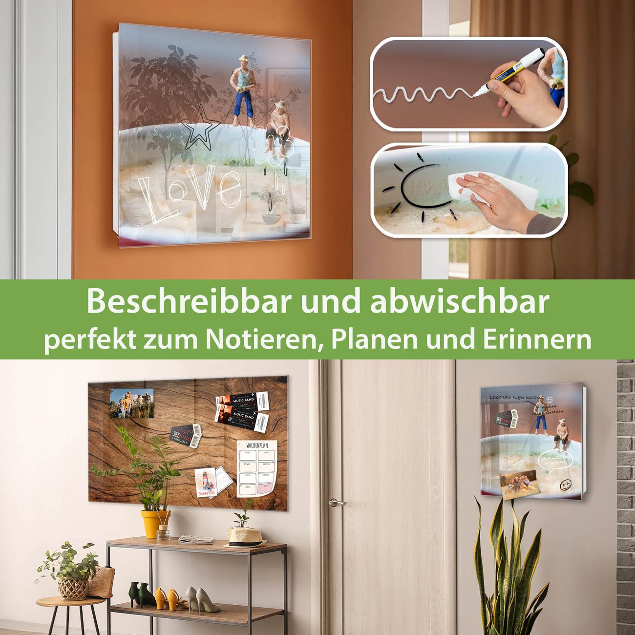 ✅ Magnetisch und mit Kreidestift beschreibbar, gehärtetes Glas, rechts angeschlagene TürOrdnung und Design in einem