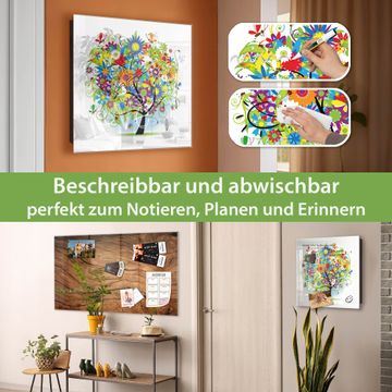 Bringe Ordnung und Eleganz in deinen Eingangsbereich mit dem banjado Schlüsselkasten Motiv Motiv Märchenzauberbaum. Die moderne Schlüsselbox kombiniert funktionales Design mit hochwertiger Verarbeitung und wird so zu einem echten Hingucker in Flur, Büro oder Ferienwohnung. ✅ Stilvolle Schlüsselaufbewahrung mit Glasfront im Motiv Motiv Märchenzauberbaum Der Design-Schlüsselkasten Motiv Motiv Märchenzauberbaum bietet Platz für bis zu 50 Schlüssel, die auf 5 stabilen Reihen mit je 10 Haken übersichtlich verstaut werden. Mit seinen kompakten Maßen von 30 x 30 x 5 cm passt die Schlüsselbox perfekt auch in kleinere Räume. Der schwarz lackierte Stahlkorpus mit rechts angeschlagenem Türscharnier harmoniert mit der Glasfront und fügt sich nahtlos in jedes Wohnambiente ein. Ob als Schlüsselorganizer für Zuhause oder als praktische Lösung für Büros, Praxen und Gewerbe, der banjado Schlüsselkasten sorgt für Ordnung und Übersicht. Dank der magnetischen, mit Kreidestiften beschreibbaren Glasfront kannst du Notizen anheften oder Termine direkt auf der Oberfläche festhalten. Die Schlüsselbox Motiv Motiv Märchenzauberbaum zur Wandmontage wird inklusive Befestigungsmaterial geliefert und ist schnell angebracht. So hast du deine Schlüssel jederzeit griffbereit und zugleich stilvoll verstaut. Mit diesem banjado Schlüsselkasten Motiv Motiv Märchenzauberbaum kombinierst du praktische Aufbewahrung mit stilvollem Wohndesign. Ob privat oder geschäftlich, die Schlüsselbox sorgt für mehr Ordnung, Übersicht und ein wohnliches Ambiente.Vorteile im Überblick
