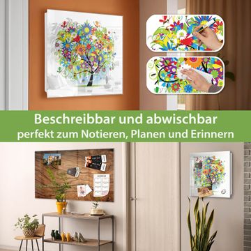 Bringe Ordnung und Eleganz in deinen Eingangsbereich mit dem banjado Schlüsselkasten Motiv Motiv Märchenzauberbaum. Die moderne Schlüsselbox kombiniert funktionales Design mit hochwertiger Verarbeitung und wird so zu einem echten Hingucker in Flur, Büro oder Ferienwohnung. ✅ Stilvolle Schlüsselaufbewahrung mit Glasfront im Motiv Motiv Märchenzauberbaum Der Design-Schlüsselkasten Motiv Motiv Märchenzauberbaum bietet Platz für bis zu 50 Schlüssel, die auf 5 stabilen Reihen mit je 10 Haken übersichtlich verstaut werden. Mit seinen kompakten Maßen von 30 x 30 x 5 cm passt die Schlüsselbox perfekt auch in kleinere Räume. Der weiß lackierte Stahlkorpus mit rechts angeschlagenem Türscharnier harmoniert mit der Glasfront und fügt sich nahtlos in jedes Wohnambiente ein. Ob als Schlüsselorganizer für Zuhause oder als praktische Lösung für Büros, Praxen und Gewerbe, der banjado Schlüsselkasten sorgt für Ordnung und Übersicht. Dank der magnetischen, mit Kreidestiften beschreibbaren Glasfront kannst du Notizen anheften oder Termine direkt auf der Oberfläche festhalten. Die Schlüsselbox Motiv Motiv Märchenzauberbaum zur Wandmontage wird inklusive Befestigungsmaterial geliefert und ist schnell angebracht. So hast du deine Schlüssel jederzeit griffbereit und zugleich stilvoll verstaut. Mit diesem banjado Schlüsselkasten Motiv Motiv Märchenzauberbaum kombinierst du praktische Aufbewahrung mit stilvollem Wohndesign. Ob privat oder geschäftlich, die Schlüsselbox sorgt für mehr Ordnung, Übersicht und ein wohnliches Ambiente.Vorteile im Überblick