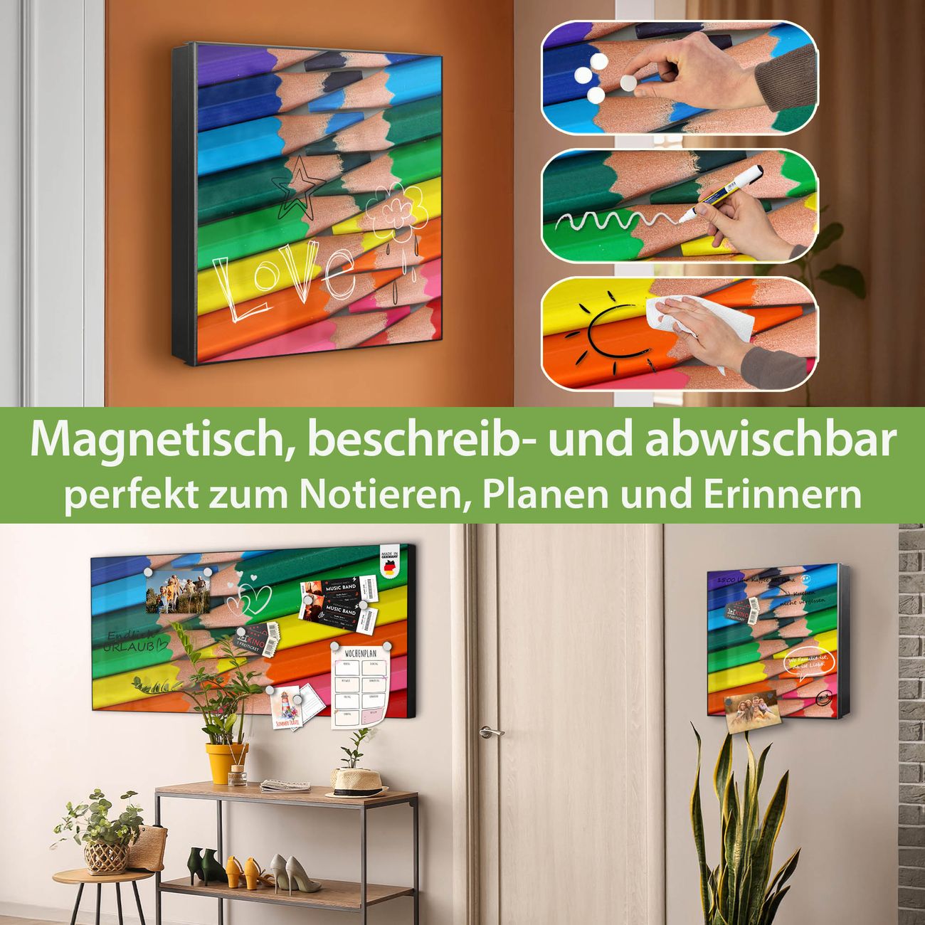✅ Magnetisch und mit Kreidestift beschreibbar, links angeschlagene TürOrdnung und Design in einem