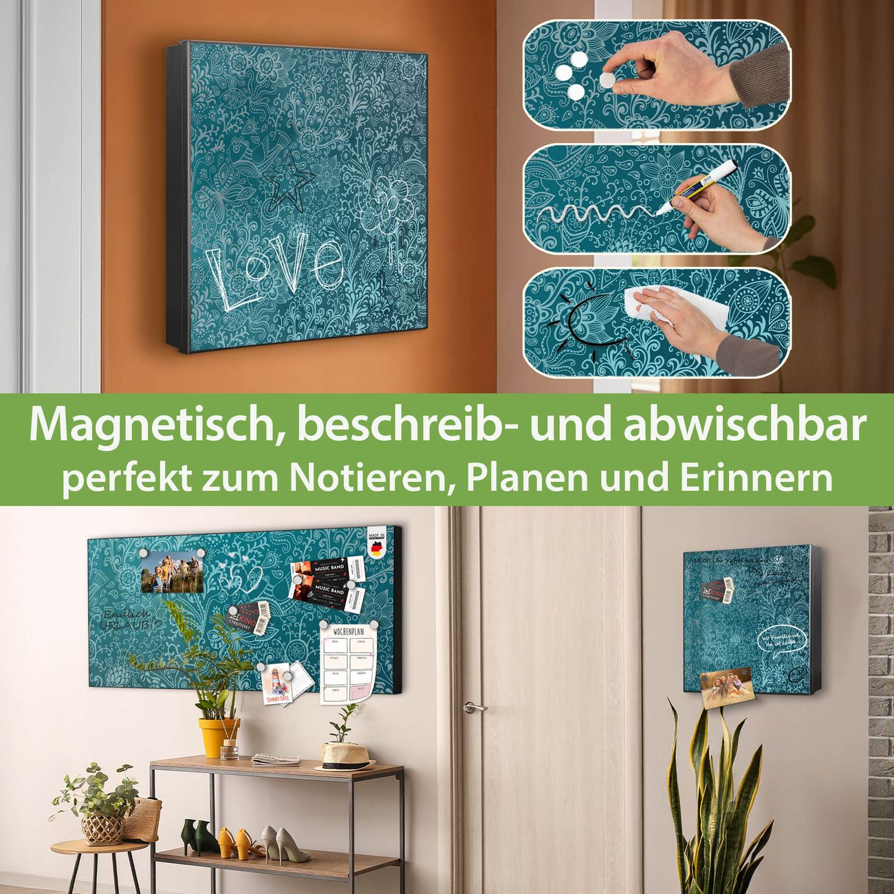 ✅ Magnetisch und mit Kreidestift beschreibbar, rechts angeschlagene TürOrdnung und Design in einem