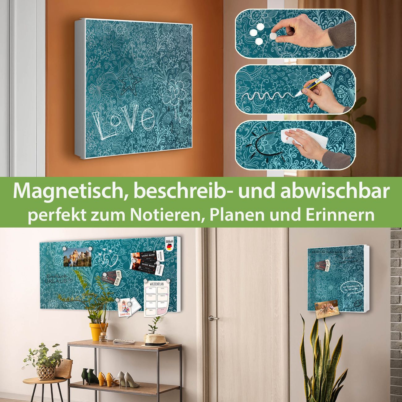 ✅ Magnetisch und mit Kreidestift beschreibbar, rechts angeschlagene TürOrdnung und Design in einem