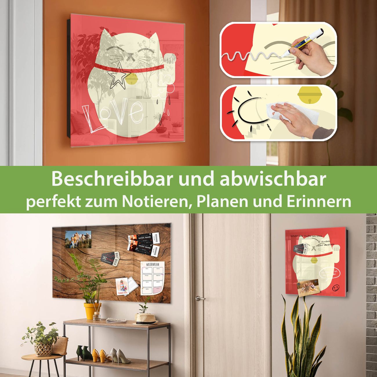✅ Magnetisch und mit Kreidestift beschreibbar, gehärtetes Glas, links angeschlagene TürOrdnung und Design in einem