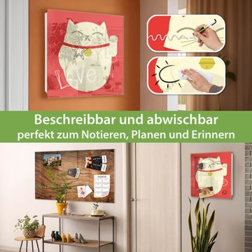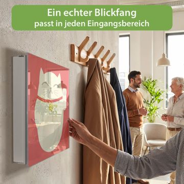 Bringe Ordnung und Eleganz in deinen Eingangsbereich mit dem banjado Schlüsselkasten Motiv Motiv Manekineko. Die moderne Schlüsselbox kombiniert funktionales Design mit hochwertiger Verarbeitung und wird so zu einem echten Hingucker in Flur, Büro oder Ferienwohnung. ✅ Stilvolle Schlüsselaufbewahrung mit Glasfront im Motiv Motiv Manekineko Der Design-Schlüsselkasten Motiv Motiv Manekineko bietet Platz für bis zu 50 Schlüssel, die auf 5 stabilen Reihen mit je 10 Haken übersichtlich verstaut werden. Mit seinen kompakten Maßen von 30 x 30 x 5 cm passt die Schlüsselbox perfekt auch in kleinere Räume. Der weiß lackierte Stahlkorpus mit rechts angeschlagenem Türscharnier harmoniert mit der Glasfront und fügt sich nahtlos in jedes Wohnambiente ein. Ob als Schlüsselorganizer für Zuhause oder als praktische Lösung für Büros, Praxen und Gewerbe, der banjado Schlüsselkasten sorgt für Ordnung und Übersicht. Dank der magnetischen, mit Kreidestiften beschreibbaren Glasfront kannst du Notizen anheften oder Termine direkt auf der Oberfläche festhalten. Die Schlüsselbox Motiv Motiv Manekineko zur Wandmontage wird inklusive Befestigungsmaterial geliefert und ist schnell angebracht. So hast du deine Schlüssel jederzeit griffbereit und zugleich stilvoll verstaut. Mit diesem banjado Schlüsselkasten Motiv Motiv Manekineko kombinierst du praktische Aufbewahrung mit stilvollem Wohndesign. Ob privat oder geschäftlich, die Schlüsselbox sorgt für mehr Ordnung, Übersicht und ein wohnliches Ambiente.Vorteile im Überblick