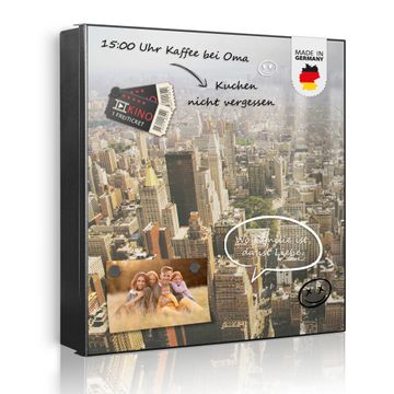 Bringe Ordnung und Eleganz in deinen Eingangsbereich mit dem banjado Schlüsselkasten Motiv Motiv Manhattan 1. Die moderne Schlüsselbox kombiniert funktionales Design mit hochwertiger Verarbeitung und wird so zu einem echten Hingucker in Flur, Büro oder Ferienwohnung. ✅ Stilvolle Schlüsselaufbewahrung mit Motiv Motiv Manhattan 1 Der Design-Schlüsselkasten Motiv Motiv Manhattan 1 bietet Platz für bis zu 32 Schlüssel, die auf 4 stabilen Reihen mit je 8 Haken übersichtlich verstaut werden. Mit seinen kompakten Maßen von 30 x 30 x 5 cm passt die Schlüsselbox perfekt auch in kleinere Räume. Der schwarz lackierte Stahlkorpus mit rechts angeschlagenem Türscharnier harmoniert mit gedruckten Folie auf der Front und fügt sich nahtlos in jedes Wohnambiente ein. Ob als Schlüsselorganizer für Zuhause oder als praktische Lösung für Büros, Praxen und Gewerbe, der banjado Schlüsselkasten sorgt für Ordnung und Übersicht. Dank der magnetischen, mit Kreidestiften beschreibbaren Folie auf der Front kannst du Notizen anheften oder Termine direkt auf der Oberfläche festhalten. Die Schlüsselbox Motiv Motiv Manhattan 1 zur Wandmontage wird inklusive Befestigungsmaterial geliefert und ist schnell angebracht. So hast du deine Schlüssel jederzeit griffbereit und zugleich stilvoll verstaut. Mit diesem banjado Schlüsselkasten Motiv Motiv Manhattan 1 kombinierst du praktische Aufbewahrung mit stilvollem Wohndesign. Ob privat oder geschäftlich, die Schlüsselbox sorgt für mehr Ordnung, Übersicht und ein wohnliches Ambiente.Vorteile im Überblick