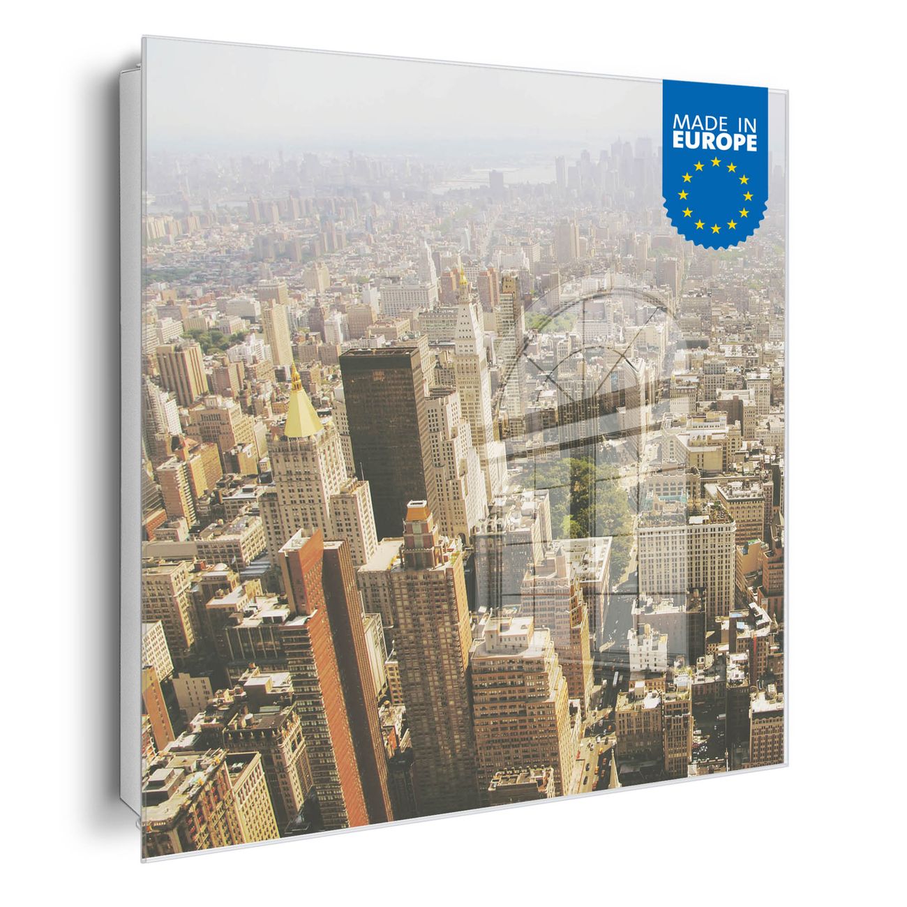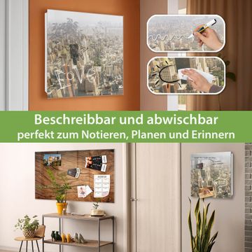 Bringe Ordnung und Eleganz in deinen Eingangsbereich mit dem banjado Schlüsselkasten Motiv Motiv Manhattan 1. Die moderne Schlüsselbox kombiniert funktionales Design mit hochwertiger Verarbeitung und wird so zu einem echten Hingucker in Flur, Büro oder Ferienwohnung. ✅ Stilvolle Schlüsselaufbewahrung mit Glasfront im Motiv Motiv Manhattan 1 Der Design-Schlüsselkasten Motiv Motiv Manhattan 1 bietet Platz für bis zu 50 Schlüssel, die auf 5 stabilen Reihen mit je 10 Haken übersichtlich verstaut werden. Mit seinen kompakten Maßen von 30 x 30 x 5 cm passt die Schlüsselbox perfekt auch in kleinere Räume. Der weiß lackierte Stahlkorpus mit rechts angeschlagenem Türscharnier harmoniert mit der Glasfront und fügt sich nahtlos in jedes Wohnambiente ein. Ob als Schlüsselorganizer für Zuhause oder als praktische Lösung für Büros, Praxen und Gewerbe, der banjado Schlüsselkasten sorgt für Ordnung und Übersicht. Dank der magnetischen, mit Kreidestiften beschreibbaren Glasfront kannst du Notizen anheften oder Termine direkt auf der Oberfläche festhalten. Die Schlüsselbox Motiv Motiv Manhattan 1 zur Wandmontage wird inklusive Befestigungsmaterial geliefert und ist schnell angebracht. So hast du deine Schlüssel jederzeit griffbereit und zugleich stilvoll verstaut. Mit diesem banjado Schlüsselkasten Motiv Motiv Manhattan 1 kombinierst du praktische Aufbewahrung mit stilvollem Wohndesign. Ob privat oder geschäftlich, die Schlüsselbox sorgt für mehr Ordnung, Übersicht und ein wohnliches Ambiente.Vorteile im Überblick
