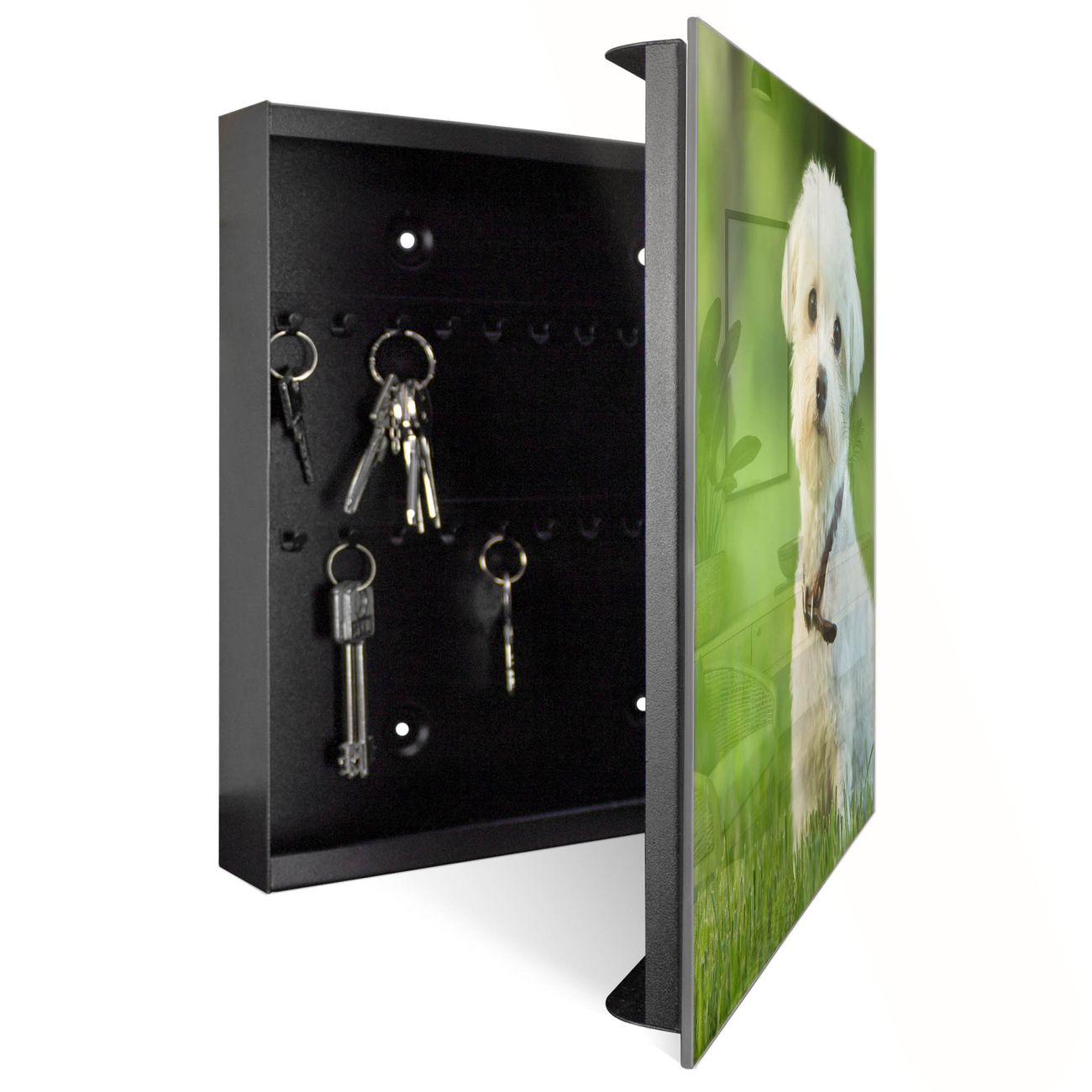 Bringe Ordnung und Eleganz in deinen Eingangsbereich mit dem banjado Schlüsselkasten Motiv Motiv Mareike. Die moderne Schlüsselbox kombiniert funktionales Design mit hochwertiger Verarbeitung und wird so zu einem echten Hingucker in Flur, Büro oder Ferienwohnung. ✅ Stilvolle Schlüsselaufbewahrung mit Glasfront im Motiv Motiv Mareike Der Design-Schlüsselkasten Motiv Motiv Mareike bietet Platz für bis zu 50 Schlüssel, die auf 5 stabilen Reihen mit je 10 Haken übersichtlich verstaut werden. Mit seinen kompakten Maßen von 30 x 30 x 5 cm passt die Schlüsselbox perfekt auch in kleinere Räume. Der schwarz lackierte Stahlkorpus mit rechts angeschlagenem Türscharnier harmoniert mit der Glasfront und fügt sich nahtlos in jedes Wohnambiente ein. Ob als Schlüsselorganizer für Zuhause oder als praktische Lösung für Büros, Praxen und Gewerbe, der banjado Schlüsselkasten sorgt für Ordnung und Übersicht. Dank der magnetischen, mit Kreidestiften beschreibbaren Glasfront kannst du Notizen anheften oder Termine direkt auf der Oberfläche festhalten. Die Schlüsselbox Motiv Motiv Mareike zur Wandmontage wird inklusive Befestigungsmaterial geliefert und ist schnell angebracht. So hast du deine Schlüssel jederzeit griffbereit und zugleich stilvoll verstaut. Mit diesem banjado Schlüsselkasten Motiv Motiv Mareike kombinierst du praktische Aufbewahrung mit stilvollem Wohndesign. Ob privat oder geschäftlich, die Schlüsselbox sorgt für mehr Ordnung, Übersicht und ein wohnliches Ambiente.Vorteile im Überblick