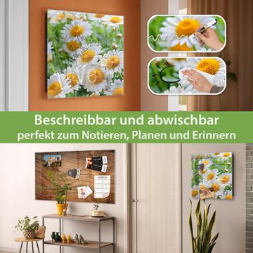 Bringe Ordnung und Eleganz in deinen Eingangsbereich mit dem banjado Schlüsselkasten Motiv Motiv Margeriten Illustration. Die moderne Schlüsselbox kombiniert funktionales Design mit hochwertiger Verarbeitung und wird so zu einem echten Hingucker in Flur, Büro oder Ferienwohnung. ✅ Stilvolle Schlüsselaufbewahrung mit Glasfront im Motiv Motiv Margeriten Illustration Der Design-Schlüsselkasten Motiv Motiv Margeriten Illustration bietet Platz für bis zu 50 Schlüssel, die auf 5 stabilen Reihen mit je 10 Haken übersichtlich verstaut werden. Mit seinen kompakten Maßen von 30 x 30 x 5 cm passt die Schlüsselbox perfekt auch in kleinere Räume. Der schwarz lackierte Stahlkorpus mit rechts angeschlagenem Türscharnier harmoniert mit der Glasfront und fügt sich nahtlos in jedes Wohnambiente ein. Ob als Schlüsselorganizer für Zuhause oder als praktische Lösung für Büros, Praxen und Gewerbe, der banjado Schlüsselkasten sorgt für Ordnung und Übersicht. Dank der magnetischen, mit Kreidestiften beschreibbaren Glasfront kannst du Notizen anheften oder Termine direkt auf der Oberfläche festhalten. Die Schlüsselbox Motiv Motiv Margeriten Illustration zur Wandmontage wird inklusive Befestigungsmaterial geliefert und ist schnell angebracht. So hast du deine Schlüssel jederzeit griffbereit und zugleich stilvoll verstaut. Mit diesem banjado Schlüsselkasten Motiv Motiv Margeriten Illustration kombinierst du praktische Aufbewahrung mit stilvollem Wohndesign. Ob privat oder geschäftlich, die Schlüsselbox sorgt für mehr Ordnung, Übersicht und ein wohnliches Ambiente.Vorteile im Überblick