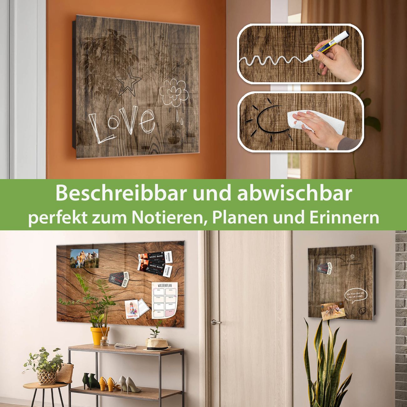 ✅ Magnetisch und mit Kreidestift beschreibbar, gehärtetes Glas, rechts angeschlagene TürOrdnung und Design in einem