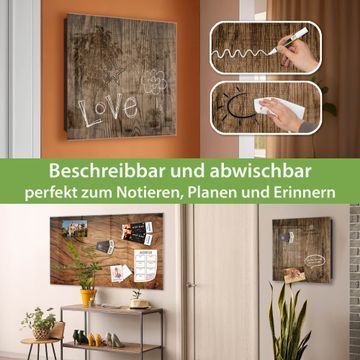 Bringe Ordnung und Eleganz in deinen Eingangsbereich mit dem banjado Schlüsselkasten Motiv Motiv Maserung Dunkel. Die moderne Schlüsselbox kombiniert funktionales Design mit hochwertiger Verarbeitung und wird so zu einem echten Hingucker in Flur, Büro oder Ferienwohnung. ✅ Stilvolle Schlüsselaufbewahrung mit Glasfront im Motiv Motiv Maserung Dunkel Der Design-Schlüsselkasten Motiv Motiv Maserung Dunkel bietet Platz für bis zu 50 Schlüssel, die auf 5 stabilen Reihen mit je 10 Haken übersichtlich verstaut werden. Mit seinen kompakten Maßen von 30 x 30 x 5 cm passt die Schlüsselbox perfekt auch in kleinere Räume. Der schwarz lackierte Stahlkorpus mit rechts angeschlagenem Türscharnier harmoniert mit der Glasfront und fügt sich nahtlos in jedes Wohnambiente ein. Ob als Schlüsselorganizer für Zuhause oder als praktische Lösung für Büros, Praxen und Gewerbe, der banjado Schlüsselkasten sorgt für Ordnung und Übersicht. Dank der magnetischen, mit Kreidestiften beschreibbaren Glasfront kannst du Notizen anheften oder Termine direkt auf der Oberfläche festhalten. Die Schlüsselbox Motiv Motiv Maserung Dunkel zur Wandmontage wird inklusive Befestigungsmaterial geliefert und ist schnell angebracht. So hast du deine Schlüssel jederzeit griffbereit und zugleich stilvoll verstaut. Mit diesem banjado Schlüsselkasten Motiv Motiv Maserung Dunkel kombinierst du praktische Aufbewahrung mit stilvollem Wohndesign. Ob privat oder geschäftlich, die Schlüsselbox sorgt für mehr Ordnung, Übersicht und ein wohnliches Ambiente.Vorteile im Überblick