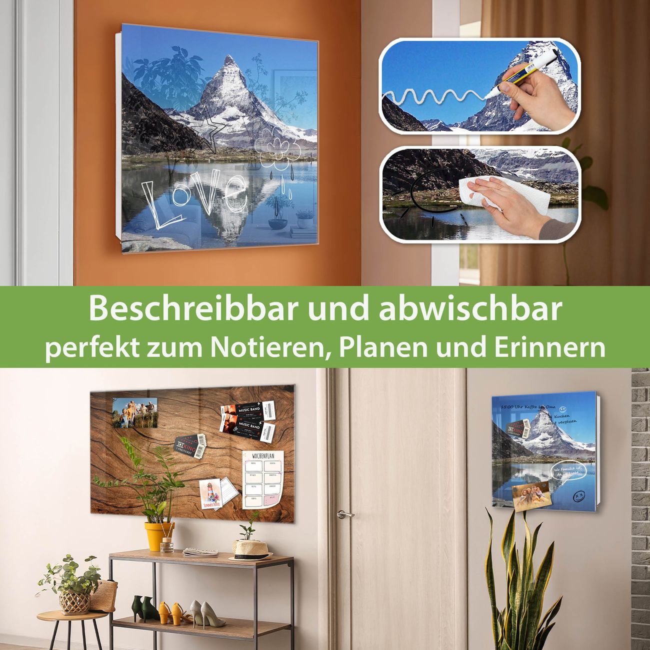 ✅ Magnetisch und mit Kreidestift beschreibbar, gehärtetes Glas, rechts angeschlagene TürOrdnung und Design in einem
