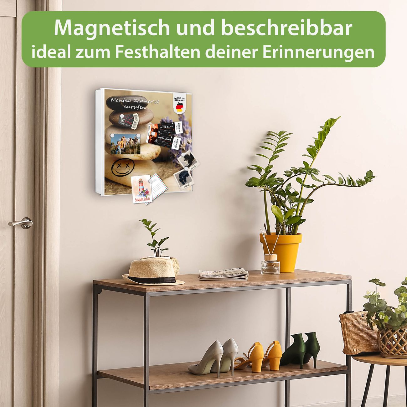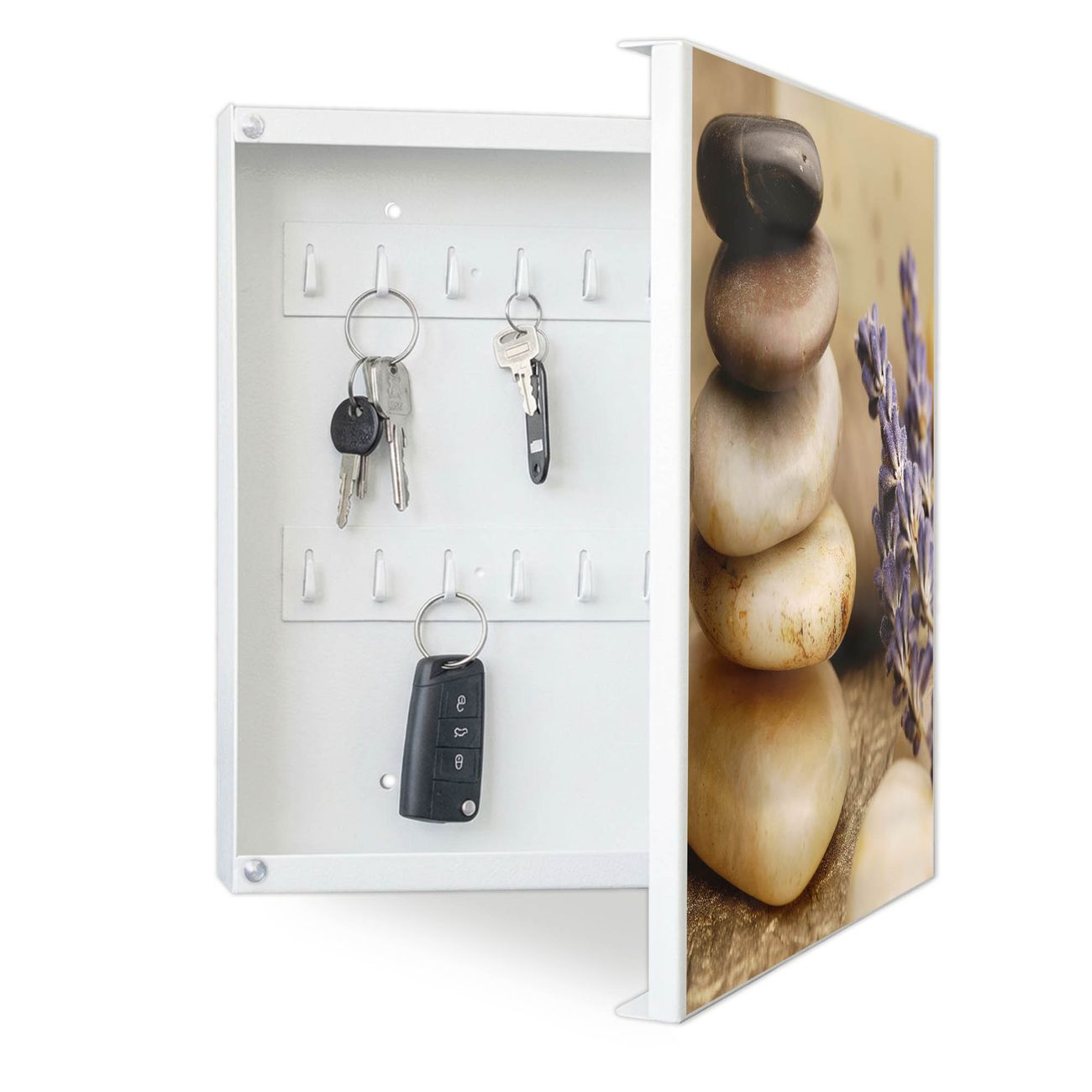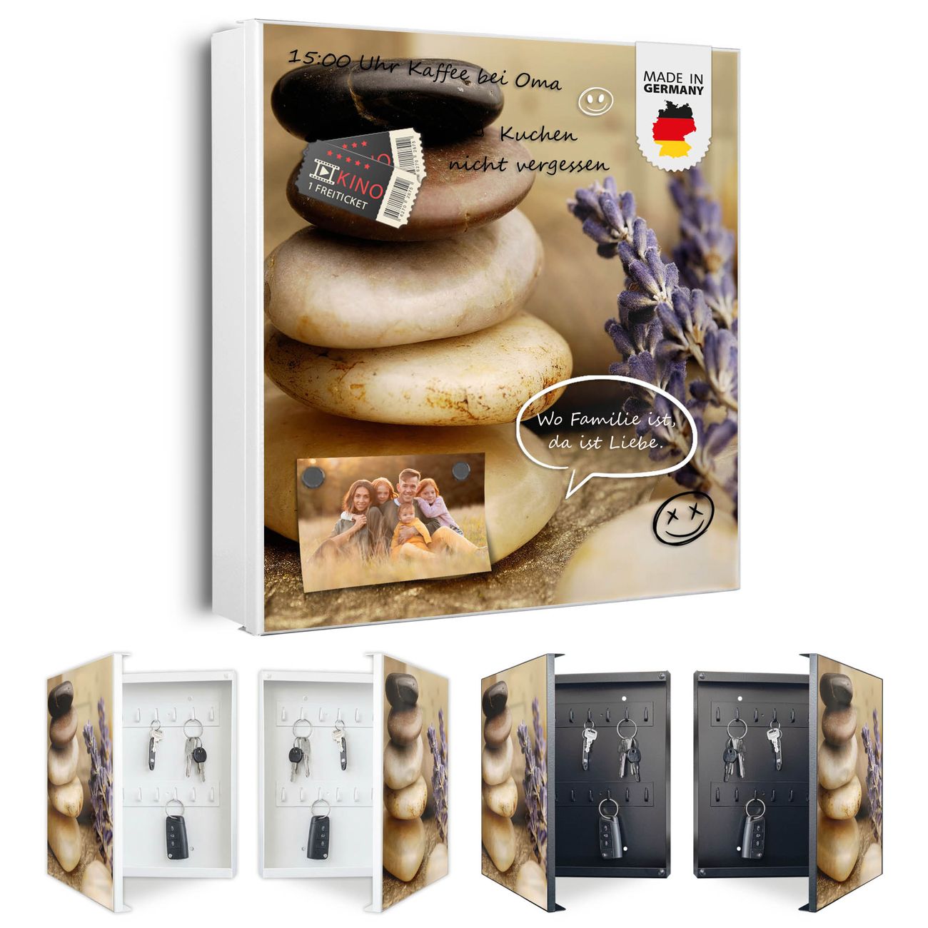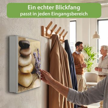 Bringe Ordnung und Eleganz in deinen Eingangsbereich mit dem banjado Schlüsselkasten Motiv Motiv Meditation. Die moderne Schlüsselbox kombiniert funktionales Design mit hochwertiger Verarbeitung und wird so zu einem echten Hingucker in Flur, Büro oder Ferienwohnung. ✅ Stilvolle Schlüsselaufbewahrung mit Motiv Motiv Meditation Der Design-Schlüsselkasten Motiv Motiv Meditation bietet Platz für bis zu 32 Schlüssel, die auf 4 stabilen Reihen mit je 8 Haken übersichtlich verstaut werden. Mit seinen kompakten Maßen von 30 x 30 x 5 cm passt die Schlüsselbox perfekt auch in kleinere Räume. Der weiß lackierte Stahlkorpus mit rechts angeschlagenem Türscharnier harmoniert mit gedruckten Folie auf der Front und fügt sich nahtlos in jedes Wohnambiente ein. Ob als Schlüsselorganizer für Zuhause oder als praktische Lösung für Büros, Praxen und Gewerbe, der banjado Schlüsselkasten sorgt für Ordnung und Übersicht. Dank der magnetischen, mit Kreidestiften beschreibbaren Folie auf der Front kannst du Notizen anheften oder Termine direkt auf der Oberfläche festhalten. Die Schlüsselbox Motiv Motiv Meditation zur Wandmontage wird inklusive Befestigungsmaterial geliefert und ist schnell angebracht. So hast du deine Schlüssel jederzeit griffbereit und zugleich stilvoll verstaut. Mit diesem banjado Schlüsselkasten Motiv Motiv Meditation kombinierst du praktische Aufbewahrung mit stilvollem Wohndesign. Ob privat oder geschäftlich, die Schlüsselbox sorgt für mehr Ordnung, Übersicht und ein wohnliches Ambiente.Vorteile im Überblick