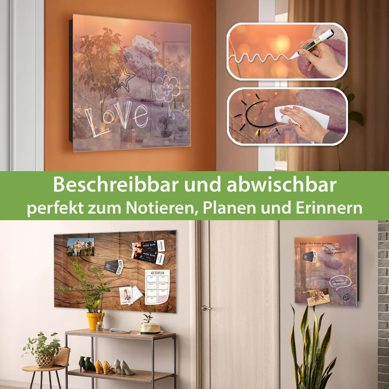 ✅ Magnetisch und mit Kreidestift beschreibbar, gehärtetes Glas, rechts angeschlagene TürOrdnung und Design in einem