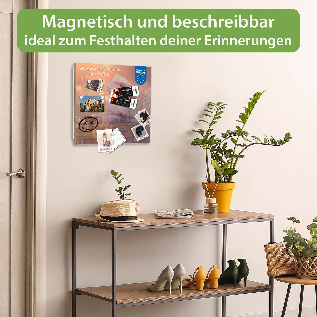 ✅ Magnetisch und mit Kreidestift beschreibbar, gehärtetes Glas, rechts angeschlagene TürOrdnung und Design in einem