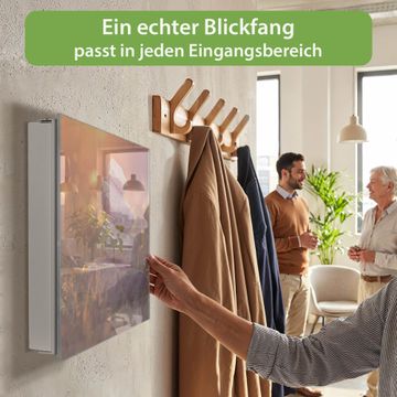 Bringe Ordnung und Eleganz in deinen Eingangsbereich mit dem banjado Schlüsselkasten Motiv Motiv Mein Ort. Die moderne Schlüsselbox kombiniert funktionales Design mit hochwertiger Verarbeitung und wird so zu einem echten Hingucker in Flur, Büro oder Ferienwohnung. ✅ Stilvolle Schlüsselaufbewahrung mit Glasfront im Motiv Motiv Mein Ort Der Design-Schlüsselkasten Motiv Motiv Mein Ort bietet Platz für bis zu 50 Schlüssel, die auf 5 stabilen Reihen mit je 10 Haken übersichtlich verstaut werden. Mit seinen kompakten Maßen von 30 x 30 x 5 cm passt die Schlüsselbox perfekt auch in kleinere Räume. Der weiß lackierte Stahlkorpus mit rechts angeschlagenem Türscharnier harmoniert mit der Glasfront und fügt sich nahtlos in jedes Wohnambiente ein. Ob als Schlüsselorganizer für Zuhause oder als praktische Lösung für Büros, Praxen und Gewerbe, der banjado Schlüsselkasten sorgt für Ordnung und Übersicht. Dank der magnetischen, mit Kreidestiften beschreibbaren Glasfront kannst du Notizen anheften oder Termine direkt auf der Oberfläche festhalten. Die Schlüsselbox Motiv Motiv Mein Ort zur Wandmontage wird inklusive Befestigungsmaterial geliefert und ist schnell angebracht. So hast du deine Schlüssel jederzeit griffbereit und zugleich stilvoll verstaut. Mit diesem banjado Schlüsselkasten Motiv Motiv Mein Ort kombinierst du praktische Aufbewahrung mit stilvollem Wohndesign. Ob privat oder geschäftlich, die Schlüsselbox sorgt für mehr Ordnung, Übersicht und ein wohnliches Ambiente.Vorteile im Überblick