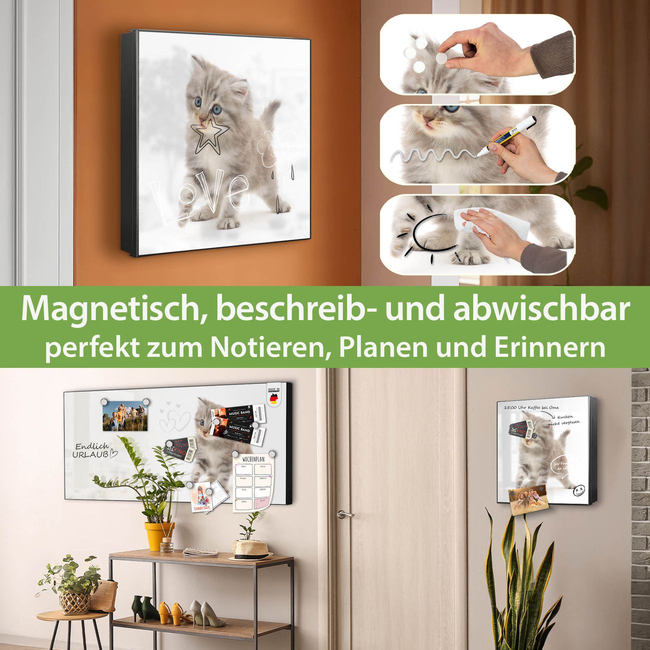 ✅ Magnetisch und mit Kreidestift beschreibbar, links angeschlagene TürOrdnung und Design in einem