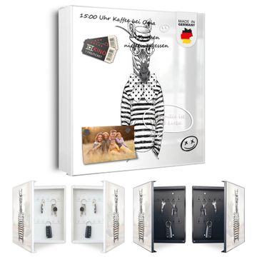 Bringe Ordnung und Eleganz in deinen Eingangsbereich mit dem banjado Schlüsselkasten Motiv Motiv Michael Stripes. Die moderne Schlüsselbox kombiniert funktionales Design mit hochwertiger Verarbeitung und wird so zu einem echten Hingucker in Flur, Büro oder Ferienwohnung. ✅ Stilvolle Schlüsselaufbewahrung mit Motiv Motiv Michael Stripes Der Design-Schlüsselkasten Motiv Motiv Michael Stripes bietet Platz für bis zu 32 Schlüssel, die auf 4 stabilen Reihen mit je 8 Haken übersichtlich verstaut werden. Mit seinen kompakten Maßen von 30 x 30 x 5 cm passt die Schlüsselbox perfekt auch in kleinere Räume. Der weiß lackierte Stahlkorpus mit rechts angeschlagenem Türscharnier harmoniert mit gedruckten Folie auf der Front und fügt sich nahtlos in jedes Wohnambiente ein. Ob als Schlüsselorganizer für Zuhause oder als praktische Lösung für Büros, Praxen und Gewerbe, der banjado Schlüsselkasten sorgt für Ordnung und Übersicht. Dank der magnetischen, mit Kreidestiften beschreibbaren Folie auf der Front kannst du Notizen anheften oder Termine direkt auf der Oberfläche festhalten. Die Schlüsselbox Motiv Motiv Michael Stripes zur Wandmontage wird inklusive Befestigungsmaterial geliefert und ist schnell angebracht. So hast du deine Schlüssel jederzeit griffbereit und zugleich stilvoll verstaut. Mit diesem banjado Schlüsselkasten Motiv Motiv Michael Stripes kombinierst du praktische Aufbewahrung mit stilvollem Wohndesign. Ob privat oder geschäftlich, die Schlüsselbox sorgt für mehr Ordnung, Übersicht und ein wohnliches Ambiente.Vorteile im Überblick