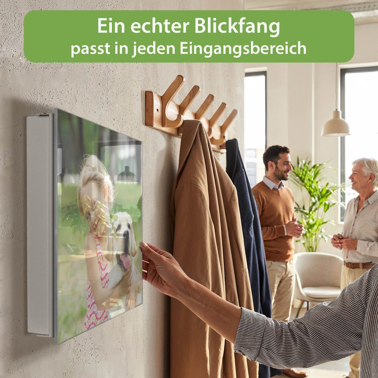 Bringe Ordnung und Eleganz in deinen Eingangsbereich mit dem banjado Schlüsselkasten Motiv Motiv Wunschmotiv. Die moderne Schlüsselbox kombiniert funktionales Design mit hochwertiger Verarbeitung und wird so zu einem echten Hingucker in Flur, Büro oder Ferienwohnung. ✅ Stilvolle Schlüsselaufbewahrung mit Glasfront im Motiv Motiv Wunschmotiv Der Design-Schlüsselkasten Motiv Motiv Wunschmotiv bietet Platz für bis zu 50 Schlüssel, die auf 5 stabilen Reihen mit je 10 Haken übersichtlich verstaut werden. Mit seinen kompakten Maßen von 30 x 30 x 5 cm passt die Schlüsselbox perfekt auch in kleinere Räume. Der weiß lackierte Stahlkorpus mit rechts angeschlagenem Türscharnier harmoniert mit der Glasfront und fügt sich nahtlos in jedes Wohnambiente ein. Ob als Schlüsselorganizer für Zuhause oder als praktische Lösung für Büros, Praxen und Gewerbe, der banjado Schlüsselkasten sorgt für Ordnung und Übersicht. Dank der magnetischen, mit Kreidestiften beschreibbaren Glasfront kannst du Notizen anheften oder Termine direkt auf der Oberfläche festhalten. Die Schlüsselbox Motiv Motiv Wunschmotiv zur Wandmontage wird inklusive Befestigungsmaterial geliefert und ist schnell angebracht. So hast du deine Schlüssel jederzeit griffbereit und zugleich stilvoll verstaut. Mit diesem banjado Schlüsselkasten Motiv Motiv Wunschmotiv kombinierst du praktische Aufbewahrung mit stilvollem Wohndesign. Ob privat oder geschäftlich, die Schlüsselbox sorgt für mehr Ordnung, Übersicht und ein wohnliches Ambiente.Vorteile im Überblick