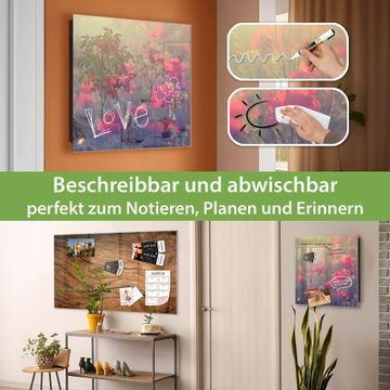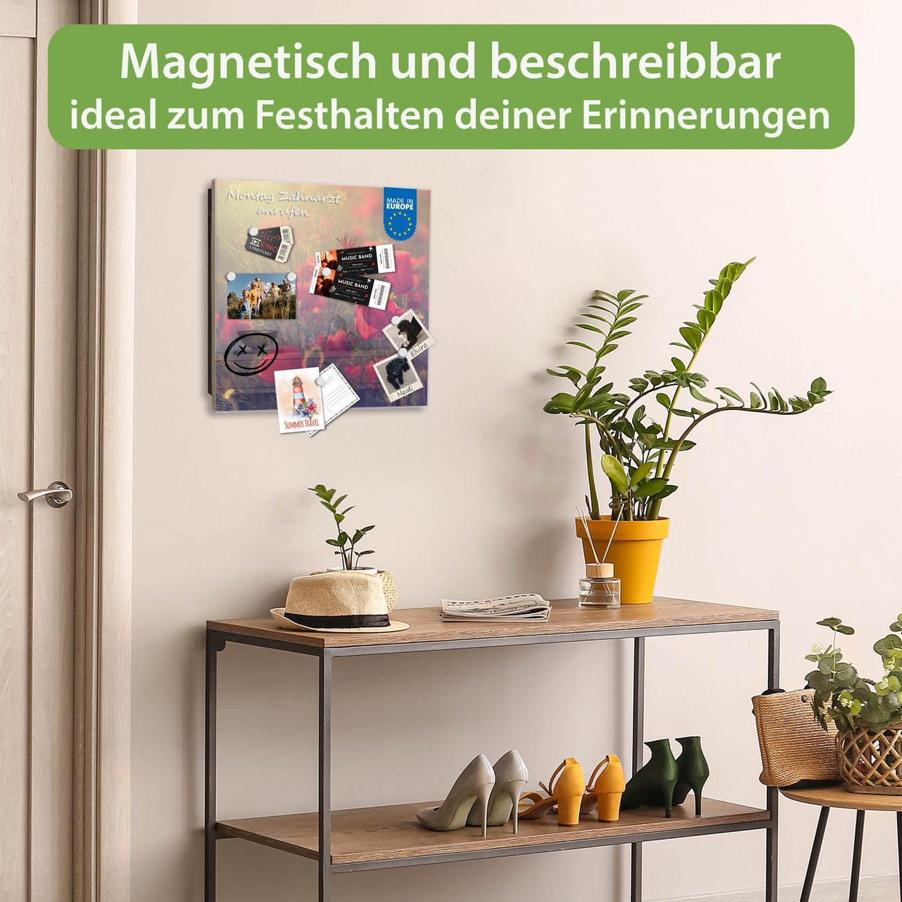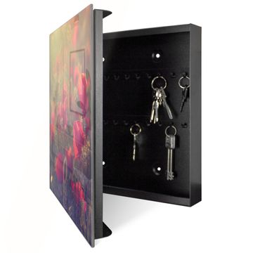 Bringe Ordnung und Eleganz in deinen Eingangsbereich mit dem banjado Schlüsselkasten Motiv Motiv Mohn. Die moderne Schlüsselbox kombiniert funktionales Design mit hochwertiger Verarbeitung und wird so zu einem echten Hingucker in Flur, Büro oder Ferienwohnung. ✅ Stilvolle Schlüsselaufbewahrung mit Glasfront im Motiv Motiv Mohn Der Design-Schlüsselkasten Motiv Motiv Mohn bietet Platz für bis zu 50 Schlüssel, die auf 5 stabilen Reihen mit je 10 Haken übersichtlich verstaut werden. Mit seinen kompakten Maßen von 30 x 30 x 5 cm passt die Schlüsselbox perfekt auch in kleinere Räume. Der schwarz lackierte Stahlkorpus mit rechts angeschlagenem Türscharnier harmoniert mit der Glasfront und fügt sich nahtlos in jedes Wohnambiente ein. Ob als Schlüsselorganizer für Zuhause oder als praktische Lösung für Büros, Praxen und Gewerbe, der banjado Schlüsselkasten sorgt für Ordnung und Übersicht. Dank der magnetischen, mit Kreidestiften beschreibbaren Glasfront kannst du Notizen anheften oder Termine direkt auf der Oberfläche festhalten. Die Schlüsselbox Motiv Motiv Mohn zur Wandmontage wird inklusive Befestigungsmaterial geliefert und ist schnell angebracht. So hast du deine Schlüssel jederzeit griffbereit und zugleich stilvoll verstaut. Mit diesem banjado Schlüsselkasten Motiv Motiv Mohn kombinierst du praktische Aufbewahrung mit stilvollem Wohndesign. Ob privat oder geschäftlich, die Schlüsselbox sorgt für mehr Ordnung, Übersicht und ein wohnliches Ambiente.Vorteile im Überblick