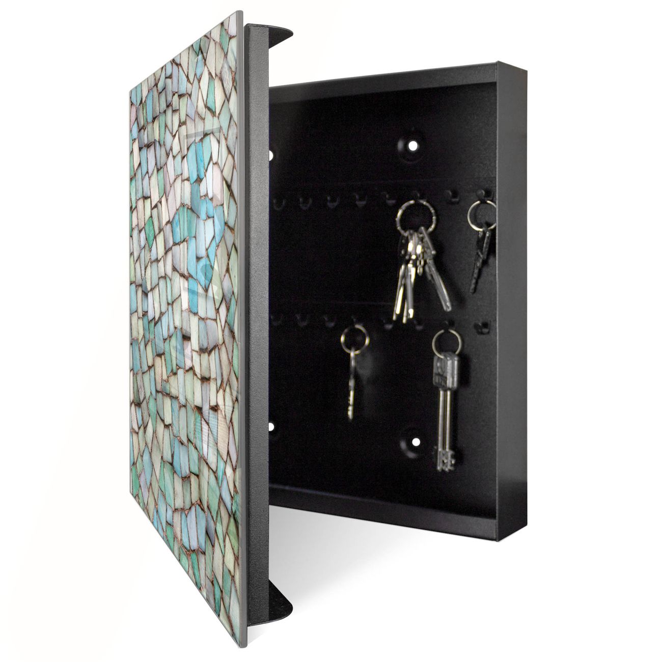 Schlüsselkasten Glas Motiv Mosaik Blau