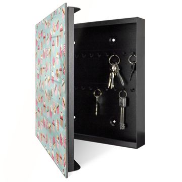 Bringe Ordnung und Eleganz in deinen Eingangsbereich mit dem banjado Schlüsselkasten Motiv Motiv Muffins. Die moderne Schlüsselbox kombiniert funktionales Design mit hochwertiger Verarbeitung und wird so zu einem echten Hingucker in Flur, Büro oder Ferienwohnung. ✅ Stilvolle Schlüsselaufbewahrung mit Glasfront im Motiv Motiv Muffins Der Design-Schlüsselkasten Motiv Motiv Muffins bietet Platz für bis zu 50 Schlüssel, die auf 5 stabilen Reihen mit je 10 Haken übersichtlich verstaut werden. Mit seinen kompakten Maßen von 30 x 30 x 5 cm passt die Schlüsselbox perfekt auch in kleinere Räume. Der schwarz lackierte Stahlkorpus mit rechts angeschlagenem Türscharnier harmoniert mit der Glasfront und fügt sich nahtlos in jedes Wohnambiente ein. Ob als Schlüsselorganizer für Zuhause oder als praktische Lösung für Büros, Praxen und Gewerbe, der banjado Schlüsselkasten sorgt für Ordnung und Übersicht. Dank der magnetischen, mit Kreidestiften beschreibbaren Glasfront kannst du Notizen anheften oder Termine direkt auf der Oberfläche festhalten. Die Schlüsselbox Motiv Motiv Muffins zur Wandmontage wird inklusive Befestigungsmaterial geliefert und ist schnell angebracht. So hast du deine Schlüssel jederzeit griffbereit und zugleich stilvoll verstaut. Mit diesem banjado Schlüsselkasten Motiv Motiv Muffins kombinierst du praktische Aufbewahrung mit stilvollem Wohndesign. Ob privat oder geschäftlich, die Schlüsselbox sorgt für mehr Ordnung, Übersicht und ein wohnliches Ambiente.Vorteile im Überblick