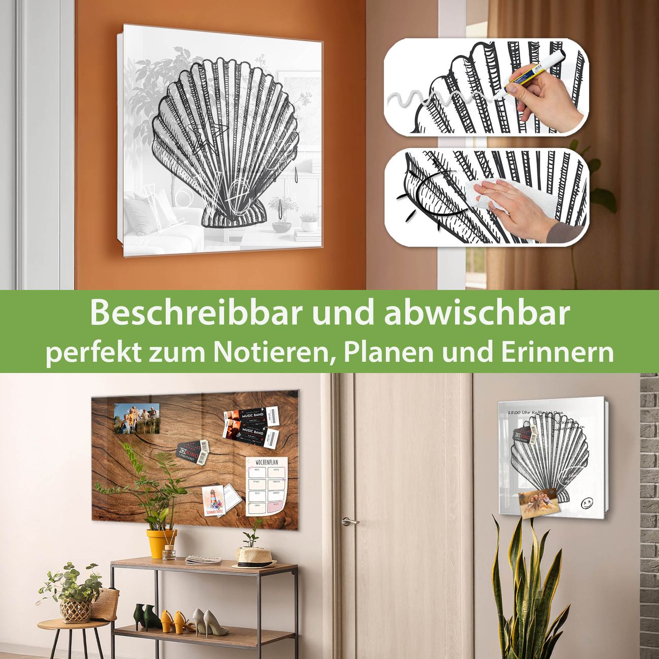 ✅ Magnetisch und mit Kreidestift beschreibbar, gehärtetes Glas, links angeschlagene TürOrdnung und Design in einem