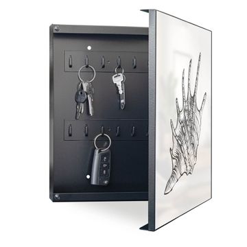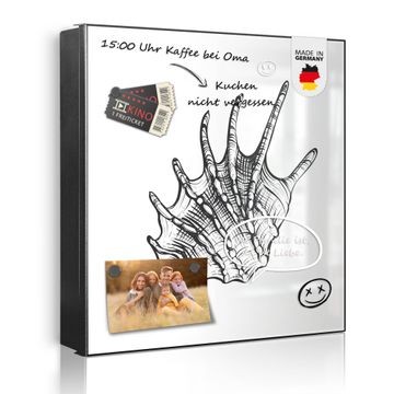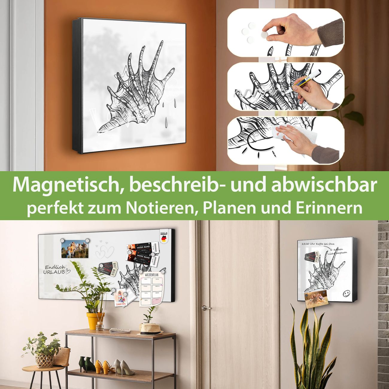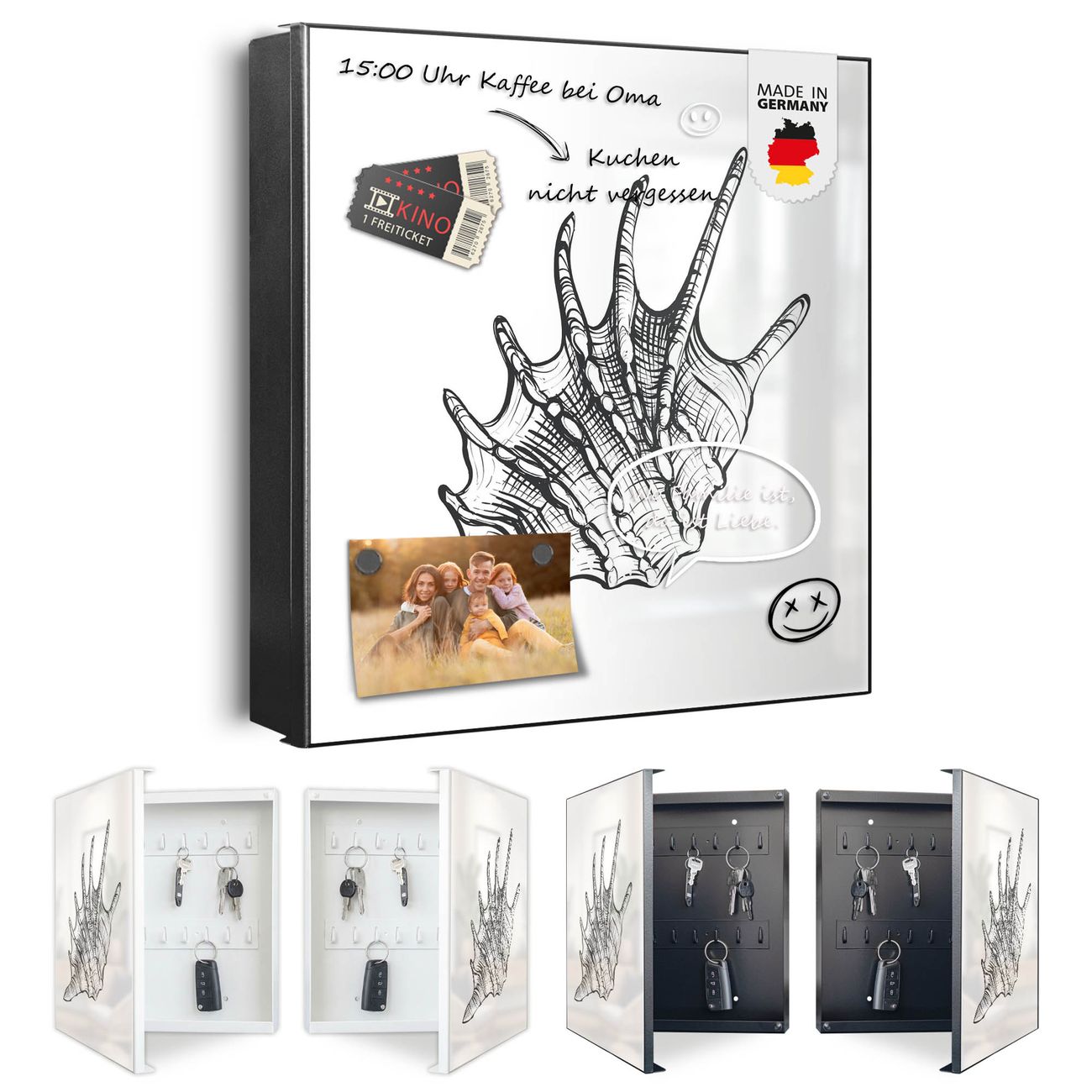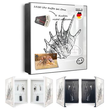 Bringe Ordnung und Eleganz in deinen Eingangsbereich mit dem banjado Schlüsselkasten Motiv Motiv Muschel 9. Die moderne Schlüsselbox kombiniert funktionales Design mit hochwertiger Verarbeitung und wird so zu einem echten Hingucker in Flur, Büro oder Ferienwohnung. ✅ Stilvolle Schlüsselaufbewahrung mit Motiv Motiv Muschel 9 Der Design-Schlüsselkasten Motiv Motiv Muschel 9 bietet Platz für bis zu 32 Schlüssel, die auf 4 stabilen Reihen mit je 8 Haken übersichtlich verstaut werden. Mit seinen kompakten Maßen von 30 x 30 x 5 cm passt die Schlüsselbox perfekt auch in kleinere Räume. Der schwarz lackierte Stahlkorpus mit rechts angeschlagenem Türscharnier harmoniert mit gedruckten Folie auf der Front und fügt sich nahtlos in jedes Wohnambiente ein. Ob als Schlüsselorganizer für Zuhause oder als praktische Lösung für Büros, Praxen und Gewerbe, der banjado Schlüsselkasten sorgt für Ordnung und Übersicht. Dank der magnetischen, mit Kreidestiften beschreibbaren Folie auf der Front kannst du Notizen anheften oder Termine direkt auf der Oberfläche festhalten. Die Schlüsselbox Motiv Motiv Muschel 9 zur Wandmontage wird inklusive Befestigungsmaterial geliefert und ist schnell angebracht. So hast du deine Schlüssel jederzeit griffbereit und zugleich stilvoll verstaut. Mit diesem banjado Schlüsselkasten Motiv Motiv Muschel 9 kombinierst du praktische Aufbewahrung mit stilvollem Wohndesign. Ob privat oder geschäftlich, die Schlüsselbox sorgt für mehr Ordnung, Übersicht und ein wohnliches Ambiente.Vorteile im Überblick