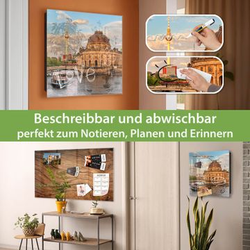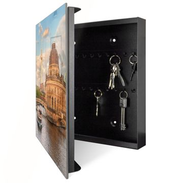 Bringe Ordnung und Eleganz in deinen Eingangsbereich mit dem banjado Schlüsselkasten Motiv Motiv Museumsinsel . Die moderne Schlüsselbox kombiniert funktionales Design mit hochwertiger Verarbeitung und wird so zu einem echten Hingucker in Flur, Büro oder Ferienwohnung. ✅ Stilvolle Schlüsselaufbewahrung mit Glasfront im Motiv Motiv Museumsinsel Der Design-Schlüsselkasten Motiv Motiv Museumsinsel bietet Platz für bis zu 50 Schlüssel, die auf 5 stabilen Reihen mit je 10 Haken übersichtlich verstaut werden. Mit seinen kompakten Maßen von 30 x 30 x 5 cm passt die Schlüsselbox perfekt auch in kleinere Räume. Der schwarz lackierte Stahlkorpus mit rechts angeschlagenem Türscharnier harmoniert mit der Glasfront und fügt sich nahtlos in jedes Wohnambiente ein. Ob als Schlüsselorganizer für Zuhause oder als praktische Lösung für Büros, Praxen und Gewerbe, der banjado Schlüsselkasten sorgt für Ordnung und Übersicht. Dank der magnetischen, mit Kreidestiften beschreibbaren Glasfront kannst du Notizen anheften oder Termine direkt auf der Oberfläche festhalten. Die Schlüsselbox Motiv Motiv Museumsinsel zur Wandmontage wird inklusive Befestigungsmaterial geliefert und ist schnell angebracht. So hast du deine Schlüssel jederzeit griffbereit und zugleich stilvoll verstaut. Mit diesem banjado Schlüsselkasten Motiv Motiv Museumsinsel kombinierst du praktische Aufbewahrung mit stilvollem Wohndesign. Ob privat oder geschäftlich, die Schlüsselbox sorgt für mehr Ordnung, Übersicht und ein wohnliches Ambiente.Vorteile im Überblick
