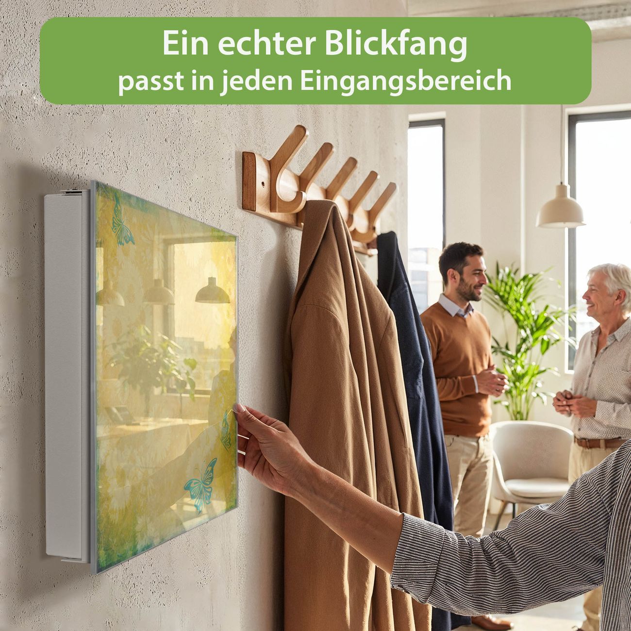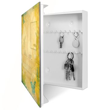 Bringe Ordnung und Eleganz in deinen Eingangsbereich mit dem banjado Schlüsselkasten Motiv Motiv Muster Sommer. Die moderne Schlüsselbox kombiniert funktionales Design mit hochwertiger Verarbeitung und wird so zu einem echten Hingucker in Flur, Büro oder Ferienwohnung. ✅ Stilvolle Schlüsselaufbewahrung mit Glasfront im Motiv Motiv Muster Sommer Der Design-Schlüsselkasten Motiv Motiv Muster Sommer bietet Platz für bis zu 50 Schlüssel, die auf 5 stabilen Reihen mit je 10 Haken übersichtlich verstaut werden. Mit seinen kompakten Maßen von 30 x 30 x 5 cm passt die Schlüsselbox perfekt auch in kleinere Räume. Der weiß lackierte Stahlkorpus mit rechts angeschlagenem Türscharnier harmoniert mit der Glasfront und fügt sich nahtlos in jedes Wohnambiente ein. Ob als Schlüsselorganizer für Zuhause oder als praktische Lösung für Büros, Praxen und Gewerbe, der banjado Schlüsselkasten sorgt für Ordnung und Übersicht. Dank der magnetischen, mit Kreidestiften beschreibbaren Glasfront kannst du Notizen anheften oder Termine direkt auf der Oberfläche festhalten. Die Schlüsselbox Motiv Motiv Muster Sommer zur Wandmontage wird inklusive Befestigungsmaterial geliefert und ist schnell angebracht. So hast du deine Schlüssel jederzeit griffbereit und zugleich stilvoll verstaut. Mit diesem banjado Schlüsselkasten Motiv Motiv Muster Sommer kombinierst du praktische Aufbewahrung mit stilvollem Wohndesign. Ob privat oder geschäftlich, die Schlüsselbox sorgt für mehr Ordnung, Übersicht und ein wohnliches Ambiente.Vorteile im Überblick