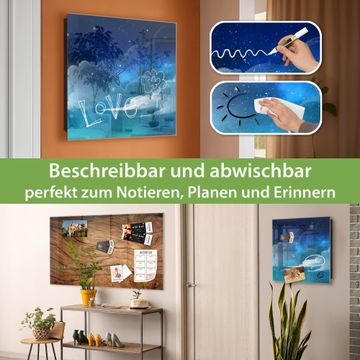 Bringe Ordnung und Eleganz in deinen Eingangsbereich mit dem banjado Schlüsselkasten Motiv Motiv Nachthimmel 1. Die moderne Schlüsselbox kombiniert funktionales Design mit hochwertiger Verarbeitung und wird so zu einem echten Hingucker in Flur, Büro oder Ferienwohnung. ✅ Stilvolle Schlüsselaufbewahrung mit Glasfront im Motiv Motiv Nachthimmel 1 Der Design-Schlüsselkasten Motiv Motiv Nachthimmel 1 bietet Platz für bis zu 50 Schlüssel, die auf 5 stabilen Reihen mit je 10 Haken übersichtlich verstaut werden. Mit seinen kompakten Maßen von 30 x 30 x 5 cm passt die Schlüsselbox perfekt auch in kleinere Räume. Der schwarz lackierte Stahlkorpus mit rechts angeschlagenem Türscharnier harmoniert mit der Glasfront und fügt sich nahtlos in jedes Wohnambiente ein. Ob als Schlüsselorganizer für Zuhause oder als praktische Lösung für Büros, Praxen und Gewerbe, der banjado Schlüsselkasten sorgt für Ordnung und Übersicht. Dank der magnetischen, mit Kreidestiften beschreibbaren Glasfront kannst du Notizen anheften oder Termine direkt auf der Oberfläche festhalten. Die Schlüsselbox Motiv Motiv Nachthimmel 1 zur Wandmontage wird inklusive Befestigungsmaterial geliefert und ist schnell angebracht. So hast du deine Schlüssel jederzeit griffbereit und zugleich stilvoll verstaut. Mit diesem banjado Schlüsselkasten Motiv Motiv Nachthimmel 1 kombinierst du praktische Aufbewahrung mit stilvollem Wohndesign. Ob privat oder geschäftlich, die Schlüsselbox sorgt für mehr Ordnung, Übersicht und ein wohnliches Ambiente.Vorteile im Überblick