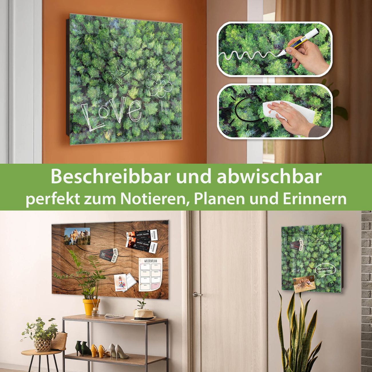 ✅ Magnetisch und mit Kreidestift beschreibbar, gehärtetes Glas, links angeschlagene TürOrdnung und Design in einem