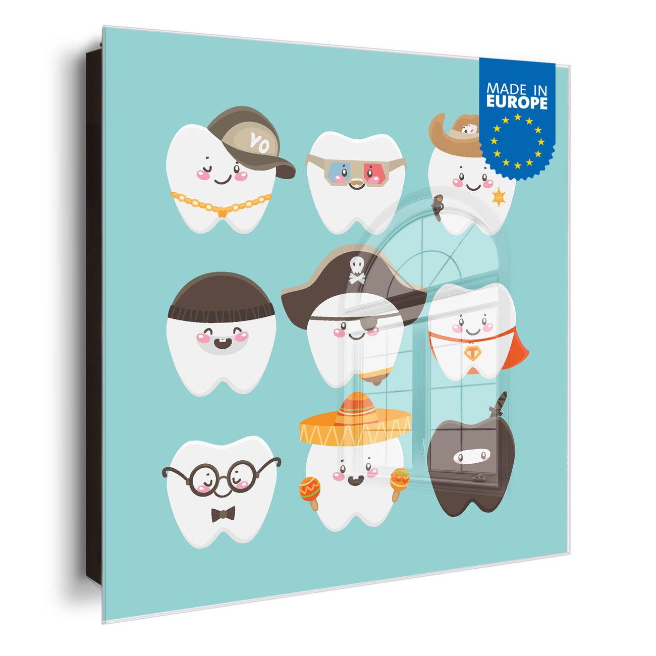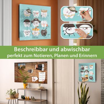 Bringe Ordnung und Eleganz in deinen Eingangsbereich mit dem banjado Schlüsselkasten Motiv Motiv Neun Zähne. Die moderne Schlüsselbox kombiniert funktionales Design mit hochwertiger Verarbeitung und wird so zu einem echten Hingucker in Flur, Büro oder Ferienwohnung. ✅ Stilvolle Schlüsselaufbewahrung mit Glasfront im Motiv Motiv Neun Zähne Der Design-Schlüsselkasten Motiv Motiv Neun Zähne bietet Platz für bis zu 50 Schlüssel, die auf 5 stabilen Reihen mit je 10 Haken übersichtlich verstaut werden. Mit seinen kompakten Maßen von 30 x 30 x 5 cm passt die Schlüsselbox perfekt auch in kleinere Räume. Der schwarz lackierte Stahlkorpus mit rechts angeschlagenem Türscharnier harmoniert mit der Glasfront und fügt sich nahtlos in jedes Wohnambiente ein. Ob als Schlüsselorganizer für Zuhause oder als praktische Lösung für Büros, Praxen und Gewerbe, der banjado Schlüsselkasten sorgt für Ordnung und Übersicht. Dank der magnetischen, mit Kreidestiften beschreibbaren Glasfront kannst du Notizen anheften oder Termine direkt auf der Oberfläche festhalten. Die Schlüsselbox Motiv Motiv Neun Zähne zur Wandmontage wird inklusive Befestigungsmaterial geliefert und ist schnell angebracht. So hast du deine Schlüssel jederzeit griffbereit und zugleich stilvoll verstaut. Mit diesem banjado Schlüsselkasten Motiv Motiv Neun Zähne kombinierst du praktische Aufbewahrung mit stilvollem Wohndesign. Ob privat oder geschäftlich, die Schlüsselbox sorgt für mehr Ordnung, Übersicht und ein wohnliches Ambiente.Vorteile im Überblick
