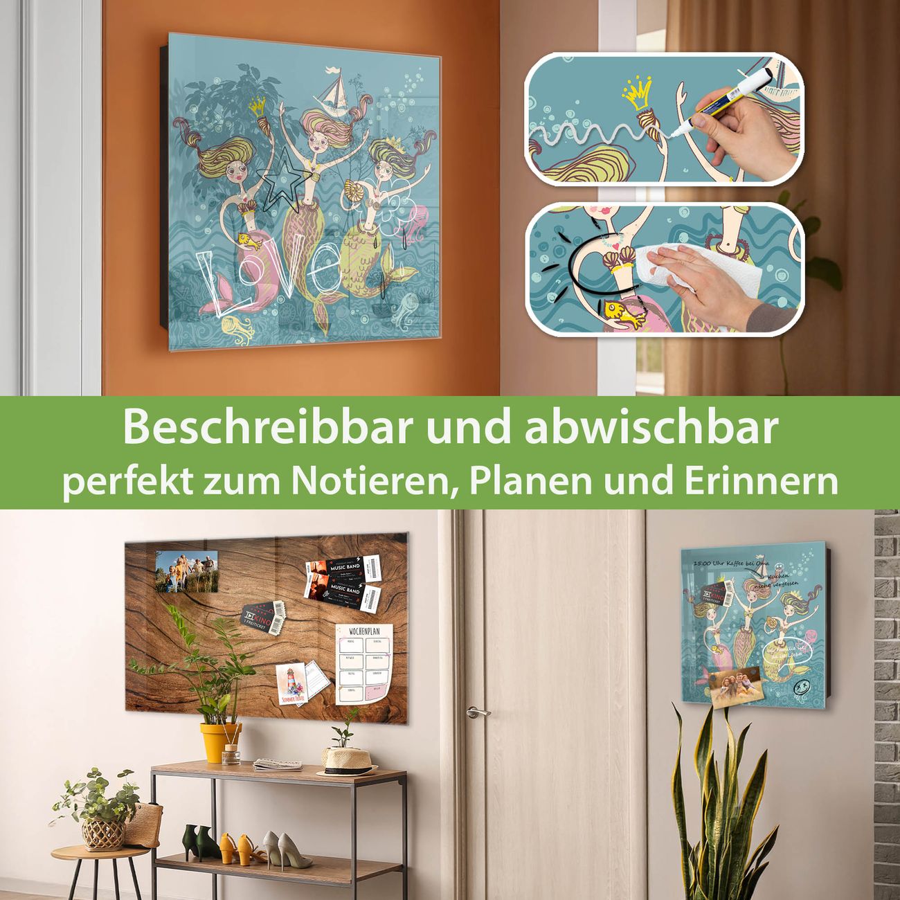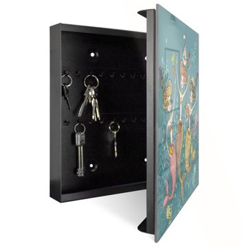 Bringe Ordnung und Eleganz in deinen Eingangsbereich mit dem banjado Schlüsselkasten Motiv Motiv Nixen. Die moderne Schlüsselbox kombiniert funktionales Design mit hochwertiger Verarbeitung und wird so zu einem echten Hingucker in Flur, Büro oder Ferienwohnung. ✅ Stilvolle Schlüsselaufbewahrung mit Glasfront im Motiv Motiv Nixen Der Design-Schlüsselkasten Motiv Motiv Nixen bietet Platz für bis zu 50 Schlüssel, die auf 5 stabilen Reihen mit je 10 Haken übersichtlich verstaut werden. Mit seinen kompakten Maßen von 30 x 30 x 5 cm passt die Schlüsselbox perfekt auch in kleinere Räume. Der schwarz lackierte Stahlkorpus mit rechts angeschlagenem Türscharnier harmoniert mit der Glasfront und fügt sich nahtlos in jedes Wohnambiente ein. Ob als Schlüsselorganizer für Zuhause oder als praktische Lösung für Büros, Praxen und Gewerbe, der banjado Schlüsselkasten sorgt für Ordnung und Übersicht. Dank der magnetischen, mit Kreidestiften beschreibbaren Glasfront kannst du Notizen anheften oder Termine direkt auf der Oberfläche festhalten. Die Schlüsselbox Motiv Motiv Nixen zur Wandmontage wird inklusive Befestigungsmaterial geliefert und ist schnell angebracht. So hast du deine Schlüssel jederzeit griffbereit und zugleich stilvoll verstaut. Mit diesem banjado Schlüsselkasten Motiv Motiv Nixen kombinierst du praktische Aufbewahrung mit stilvollem Wohndesign. Ob privat oder geschäftlich, die Schlüsselbox sorgt für mehr Ordnung, Übersicht und ein wohnliches Ambiente.Vorteile im Überblick