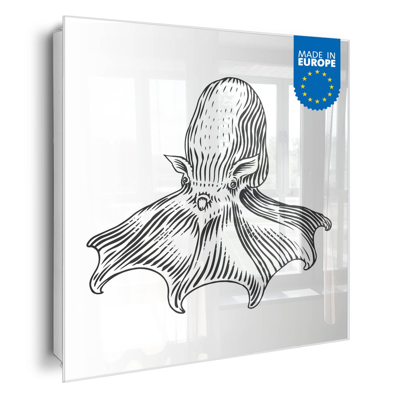 Bringe Ordnung und Eleganz in deinen Eingangsbereich mit dem banjado Schlüsselkasten Motiv Motiv Oktopus 7. Die moderne Schlüsselbox kombiniert funktionales Design mit hochwertiger Verarbeitung und wird so zu einem echten Hingucker in Flur, Büro oder Ferienwohnung. ✅ Stilvolle Schlüsselaufbewahrung mit Glasfront im Motiv Motiv Oktopus 7 Der Design-Schlüsselkasten Motiv Motiv Oktopus 7 bietet Platz für bis zu 50 Schlüssel, die auf 5 stabilen Reihen mit je 10 Haken übersichtlich verstaut werden. Mit seinen kompakten Maßen von 30 x 30 x 5 cm passt die Schlüsselbox perfekt auch in kleinere Räume. Der weiß lackierte Stahlkorpus mit rechts angeschlagenem Türscharnier harmoniert mit der Glasfront und fügt sich nahtlos in jedes Wohnambiente ein. Ob als Schlüsselorganizer für Zuhause oder als praktische Lösung für Büros, Praxen und Gewerbe, der banjado Schlüsselkasten sorgt für Ordnung und Übersicht. Dank der magnetischen, mit Kreidestiften beschreibbaren Glasfront kannst du Notizen anheften oder Termine direkt auf der Oberfläche festhalten. Die Schlüsselbox Motiv Motiv Oktopus 7 zur Wandmontage wird inklusive Befestigungsmaterial geliefert und ist schnell angebracht. So hast du deine Schlüssel jederzeit griffbereit und zugleich stilvoll verstaut. Mit diesem banjado Schlüsselkasten Motiv Motiv Oktopus 7 kombinierst du praktische Aufbewahrung mit stilvollem Wohndesign. Ob privat oder geschäftlich, die Schlüsselbox sorgt für mehr Ordnung, Übersicht und ein wohnliches Ambiente.Vorteile im Überblick
