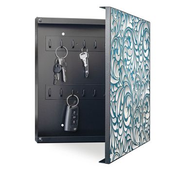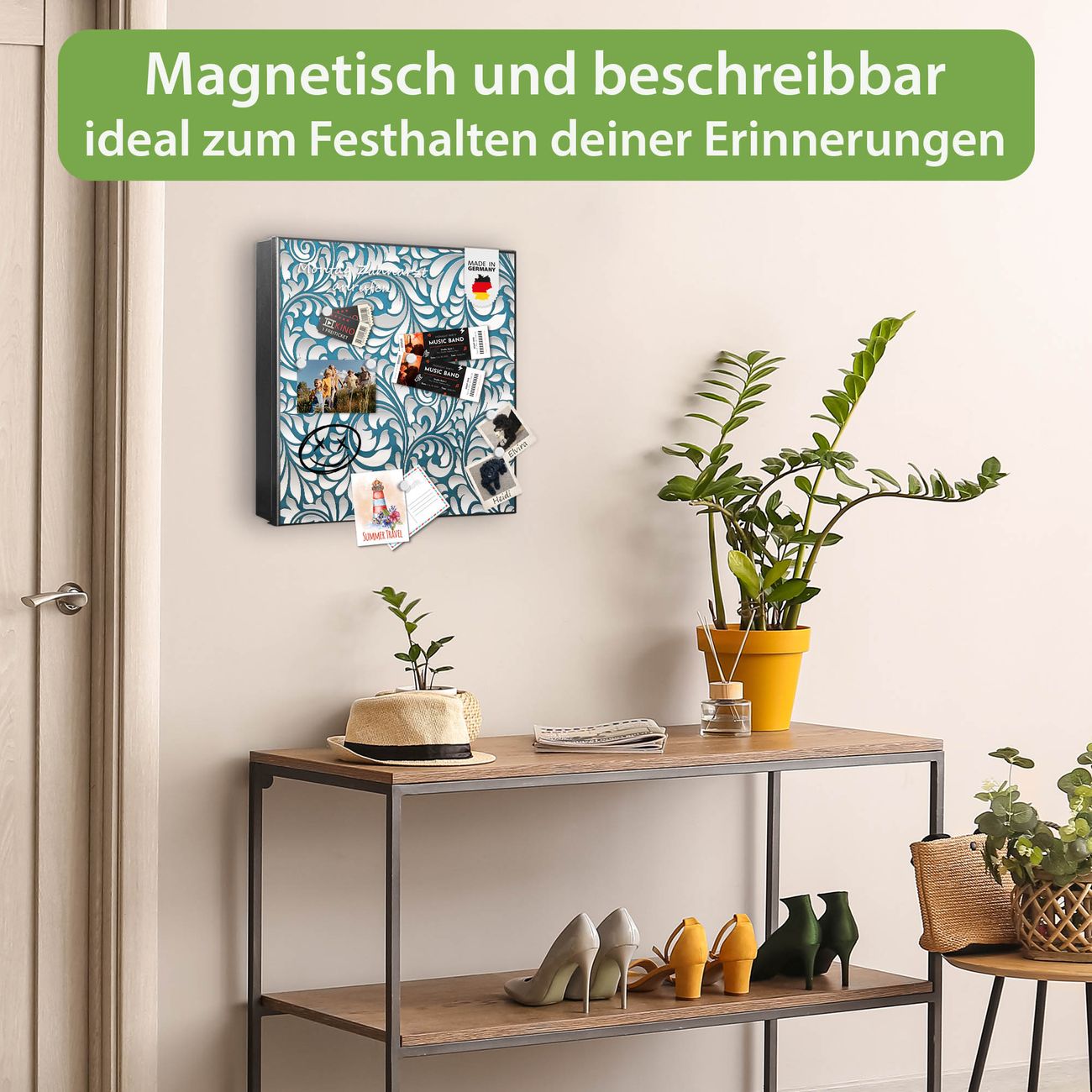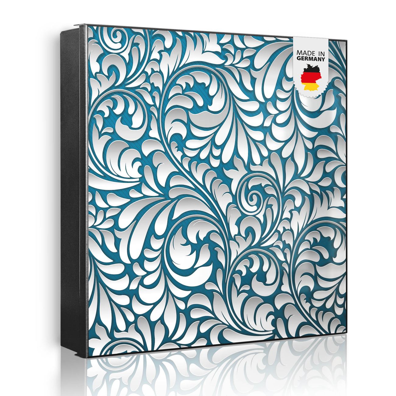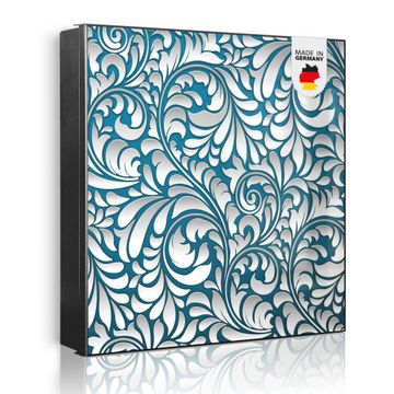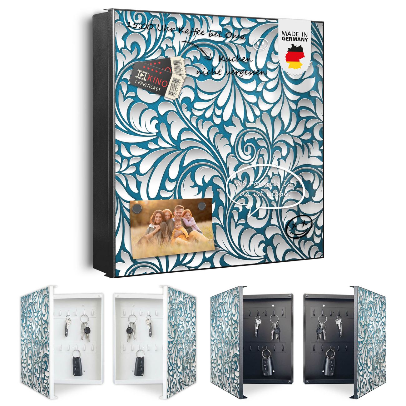 Bringe Ordnung und Eleganz in deinen Eingangsbereich mit dem banjado Schlüsselkasten Motiv Motiv Opulente Ranke. Die moderne Schlüsselbox kombiniert funktionales Design mit hochwertiger Verarbeitung und wird so zu einem echten Hingucker in Flur, Büro oder Ferienwohnung. ✅ Stilvolle Schlüsselaufbewahrung mit Motiv Motiv Opulente Ranke Der Design-Schlüsselkasten Motiv Motiv Opulente Ranke bietet Platz für bis zu 32 Schlüssel, die auf 4 stabilen Reihen mit je 8 Haken übersichtlich verstaut werden. Mit seinen kompakten Maßen von 30 x 30 x 5 cm passt die Schlüsselbox perfekt auch in kleinere Räume. Der schwarz lackierte Stahlkorpus mit rechts angeschlagenem Türscharnier harmoniert mit gedruckten Folie auf der Front und fügt sich nahtlos in jedes Wohnambiente ein. Ob als Schlüsselorganizer für Zuhause oder als praktische Lösung für Büros, Praxen und Gewerbe, der banjado Schlüsselkasten sorgt für Ordnung und Übersicht. Dank der magnetischen, mit Kreidestiften beschreibbaren Folie auf der Front kannst du Notizen anheften oder Termine direkt auf der Oberfläche festhalten. Die Schlüsselbox Motiv Motiv Opulente Ranke zur Wandmontage wird inklusive Befestigungsmaterial geliefert und ist schnell angebracht. So hast du deine Schlüssel jederzeit griffbereit und zugleich stilvoll verstaut. Mit diesem banjado Schlüsselkasten Motiv Motiv Opulente Ranke kombinierst du praktische Aufbewahrung mit stilvollem Wohndesign. Ob privat oder geschäftlich, die Schlüsselbox sorgt für mehr Ordnung, Übersicht und ein wohnliches Ambiente.Vorteile im Überblick