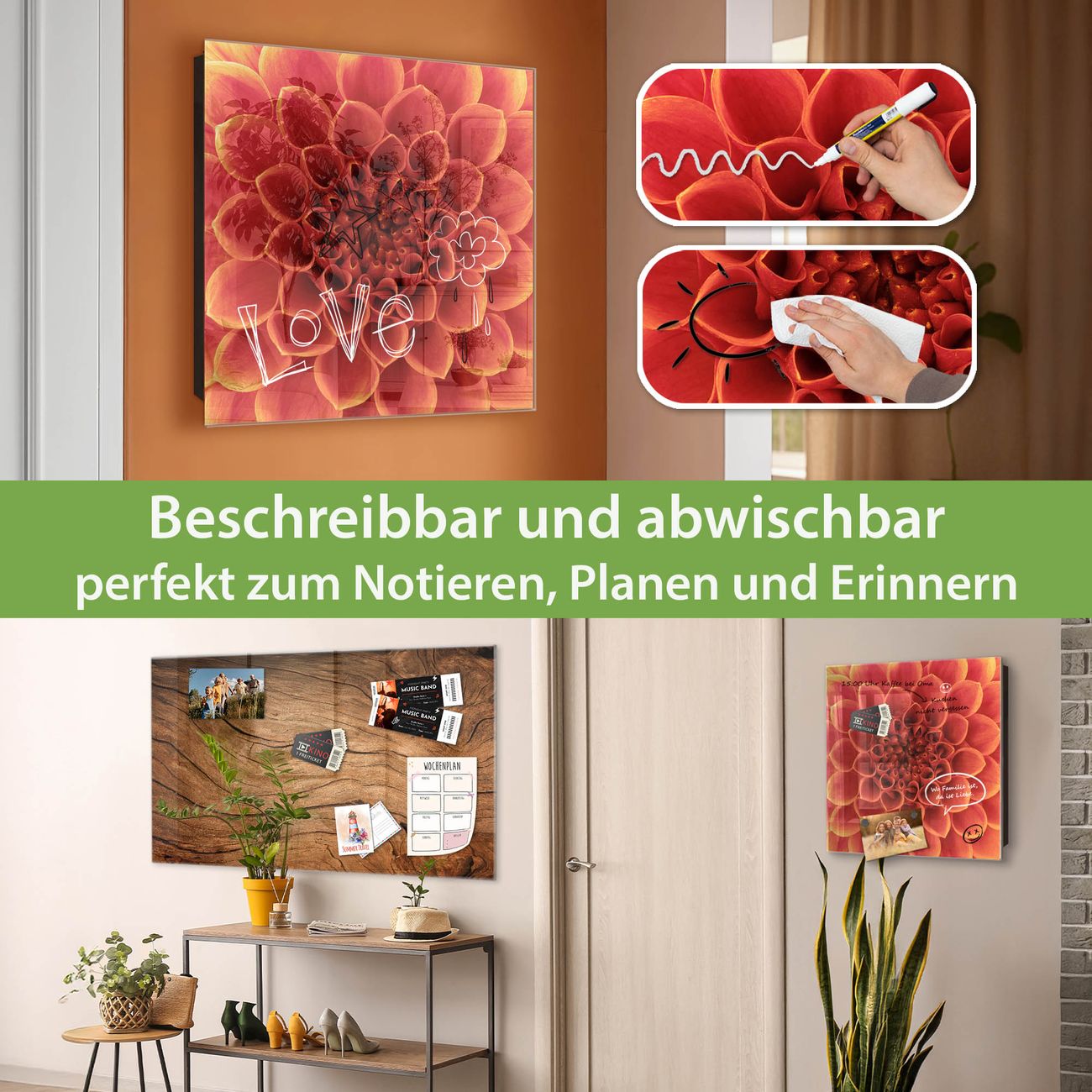 ✅ Magnetisch und mit Kreidestift beschreibbar, gehärtetes Glas, rechts angeschlagene TürOrdnung und Design in einem