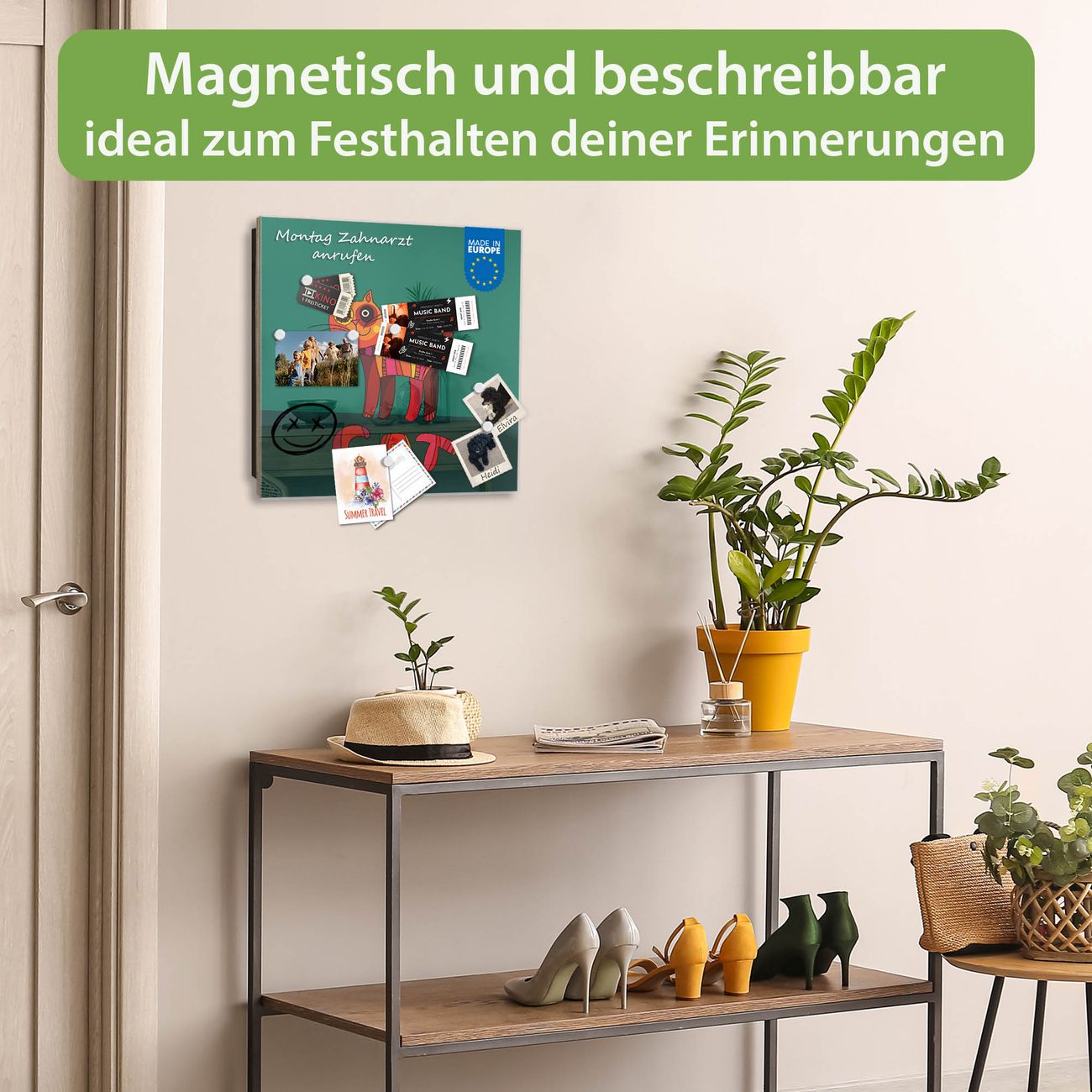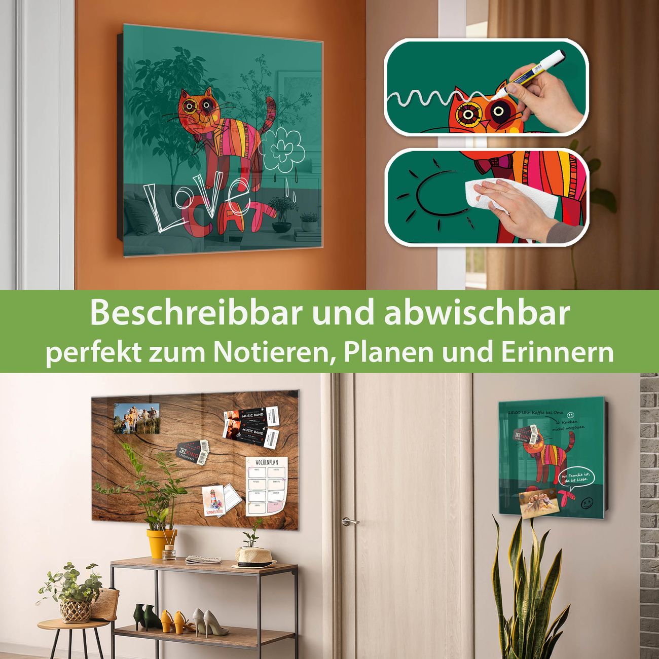 ✅ Magnetisch und mit Kreidestift beschreibbar, gehärtetes Glas, links angeschlagene TürOrdnung und Design in einem