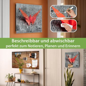 Bringe Ordnung und Eleganz in deinen Eingangsbereich mit dem banjado Schlüsselkasten Motiv Motiv Origami Schmetterling. Die moderne Schlüsselbox kombiniert funktionales Design mit hochwertiger Verarbeitung und wird so zu einem echten Hingucker in Flur, Büro oder Ferienwohnung. ✅ Stilvolle Schlüsselaufbewahrung mit Glasfront im Motiv Motiv Origami Schmetterling Der Design-Schlüsselkasten Motiv Motiv Origami Schmetterling bietet Platz für bis zu 50 Schlüssel, die auf 5 stabilen Reihen mit je 10 Haken übersichtlich verstaut werden. Mit seinen kompakten Maßen von 30 x 30 x 5 cm passt die Schlüsselbox perfekt auch in kleinere Räume. Der schwarz lackierte Stahlkorpus mit rechts angeschlagenem Türscharnier harmoniert mit der Glasfront und fügt sich nahtlos in jedes Wohnambiente ein. Ob als Schlüsselorganizer für Zuhause oder als praktische Lösung für Büros, Praxen und Gewerbe, der banjado Schlüsselkasten sorgt für Ordnung und Übersicht. Dank der magnetischen, mit Kreidestiften beschreibbaren Glasfront kannst du Notizen anheften oder Termine direkt auf der Oberfläche festhalten. Die Schlüsselbox Motiv Motiv Origami Schmetterling zur Wandmontage wird inklusive Befestigungsmaterial geliefert und ist schnell angebracht. So hast du deine Schlüssel jederzeit griffbereit und zugleich stilvoll verstaut. Mit diesem banjado Schlüsselkasten Motiv Motiv Origami Schmetterling kombinierst du praktische Aufbewahrung mit stilvollem Wohndesign. Ob privat oder geschäftlich, die Schlüsselbox sorgt für mehr Ordnung, Übersicht und ein wohnliches Ambiente.Vorteile im Überblick