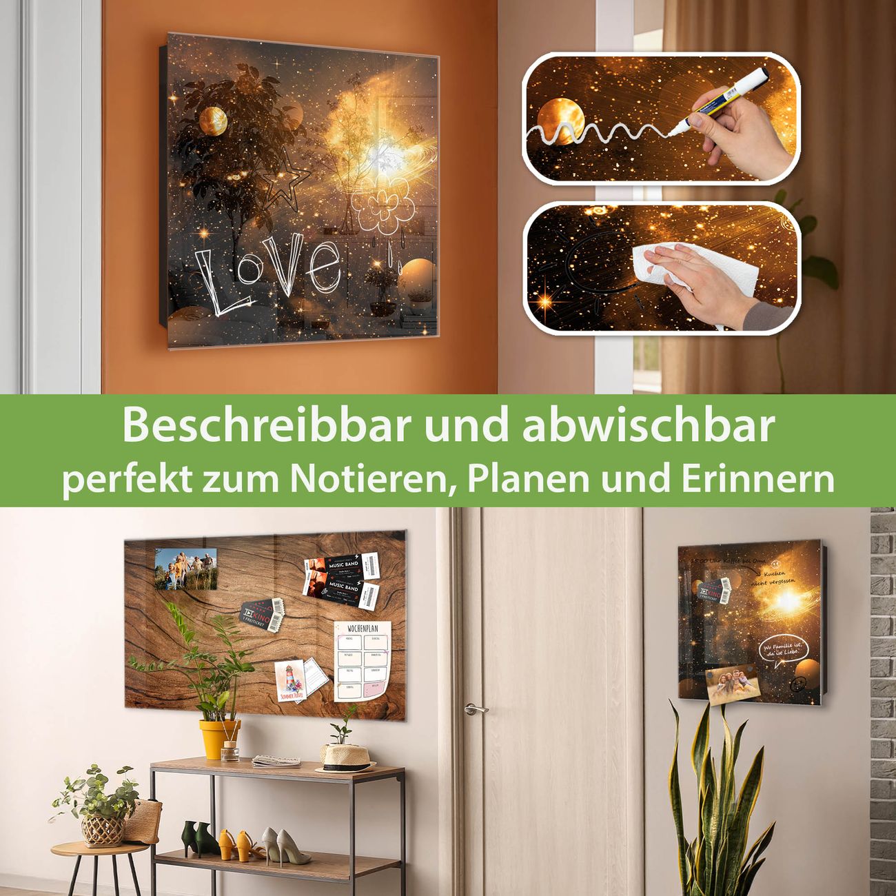 ✅ Magnetisch und mit Kreidestift beschreibbar, gehärtetes Glas, rechts angeschlagene TürOrdnung und Design in einem