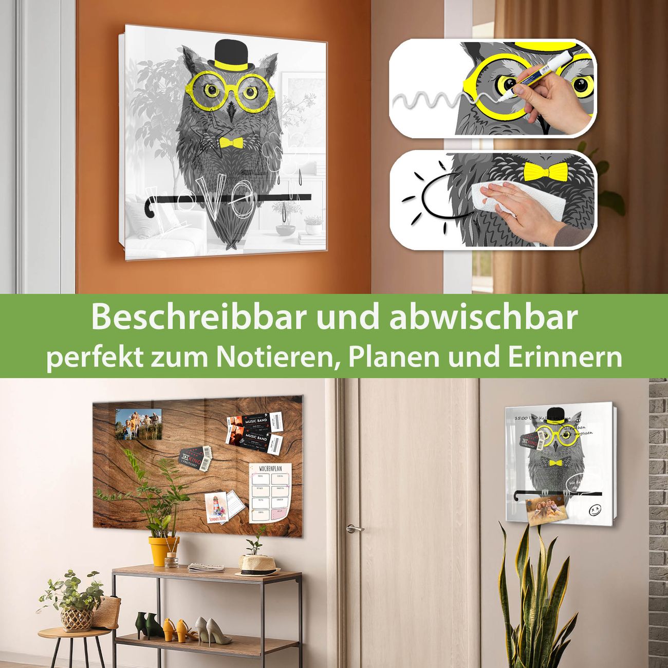 ✅ Magnetisch und mit Kreidestift beschreibbar, gehärtetes Glas, links angeschlagene TürOrdnung und Design in einem