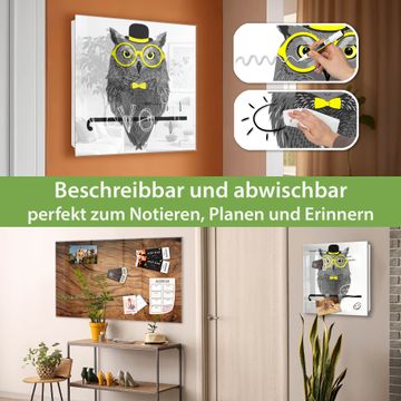 Bringe Ordnung und Eleganz in deinen Eingangsbereich mit dem banjado Schlüsselkasten Motiv Motiv Owling. Die moderne Schlüsselbox kombiniert funktionales Design mit hochwertiger Verarbeitung und wird so zu einem echten Hingucker in Flur, Büro oder Ferienwohnung. ✅ Stilvolle Schlüsselaufbewahrung mit Glasfront im Motiv Motiv Owling Der Design-Schlüsselkasten Motiv Motiv Owling bietet Platz für bis zu 50 Schlüssel, die auf 5 stabilen Reihen mit je 10 Haken übersichtlich verstaut werden. Mit seinen kompakten Maßen von 30 x 30 x 5 cm passt die Schlüsselbox perfekt auch in kleinere Räume. Der weiß lackierte Stahlkorpus mit rechts angeschlagenem Türscharnier harmoniert mit der Glasfront und fügt sich nahtlos in jedes Wohnambiente ein. Ob als Schlüsselorganizer für Zuhause oder als praktische Lösung für Büros, Praxen und Gewerbe, der banjado Schlüsselkasten sorgt für Ordnung und Übersicht. Dank der magnetischen, mit Kreidestiften beschreibbaren Glasfront kannst du Notizen anheften oder Termine direkt auf der Oberfläche festhalten. Die Schlüsselbox Motiv Motiv Owling zur Wandmontage wird inklusive Befestigungsmaterial geliefert und ist schnell angebracht. So hast du deine Schlüssel jederzeit griffbereit und zugleich stilvoll verstaut. Mit diesem banjado Schlüsselkasten Motiv Motiv Owling kombinierst du praktische Aufbewahrung mit stilvollem Wohndesign. Ob privat oder geschäftlich, die Schlüsselbox sorgt für mehr Ordnung, Übersicht und ein wohnliches Ambiente.Vorteile im Überblick