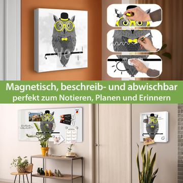 Bringe Ordnung und Eleganz in deinen Eingangsbereich mit dem banjado Schlüsselkasten Motiv Motiv Owling. Die moderne Schlüsselbox kombiniert funktionales Design mit hochwertiger Verarbeitung und wird so zu einem echten Hingucker in Flur, Büro oder Ferienwohnung. ✅ Stilvolle Schlüsselaufbewahrung mit Motiv Motiv Owling Der Design-Schlüsselkasten Motiv Motiv Owling bietet Platz für bis zu 32 Schlüssel, die auf 4 stabilen Reihen mit je 8 Haken übersichtlich verstaut werden. Mit seinen kompakten Maßen von 30 x 30 x 5 cm passt die Schlüsselbox perfekt auch in kleinere Räume. Der weiß lackierte Stahlkorpus mit links angeschlagenem Türscharnier harmoniert mit gedruckten Folie auf der Front und fügt sich nahtlos in jedes Wohnambiente ein. Ob als Schlüsselorganizer für Zuhause oder als praktische Lösung für Büros, Praxen und Gewerbe, der banjado Schlüsselkasten sorgt für Ordnung und Übersicht. Dank der magnetischen, mit Kreidestiften beschreibbaren Folie auf der Front kannst du Notizen anheften oder Termine direkt auf der Oberfläche festhalten. Die Schlüsselbox Motiv Motiv Owling zur Wandmontage wird inklusive Befestigungsmaterial geliefert und ist schnell angebracht. So hast du deine Schlüssel jederzeit griffbereit und zugleich stilvoll verstaut. Mit diesem banjado Schlüsselkasten Motiv Motiv Owling kombinierst du praktische Aufbewahrung mit stilvollem Wohndesign. Ob privat oder geschäftlich, die Schlüsselbox sorgt für mehr Ordnung, Übersicht und ein wohnliches Ambiente.Vorteile im Überblick