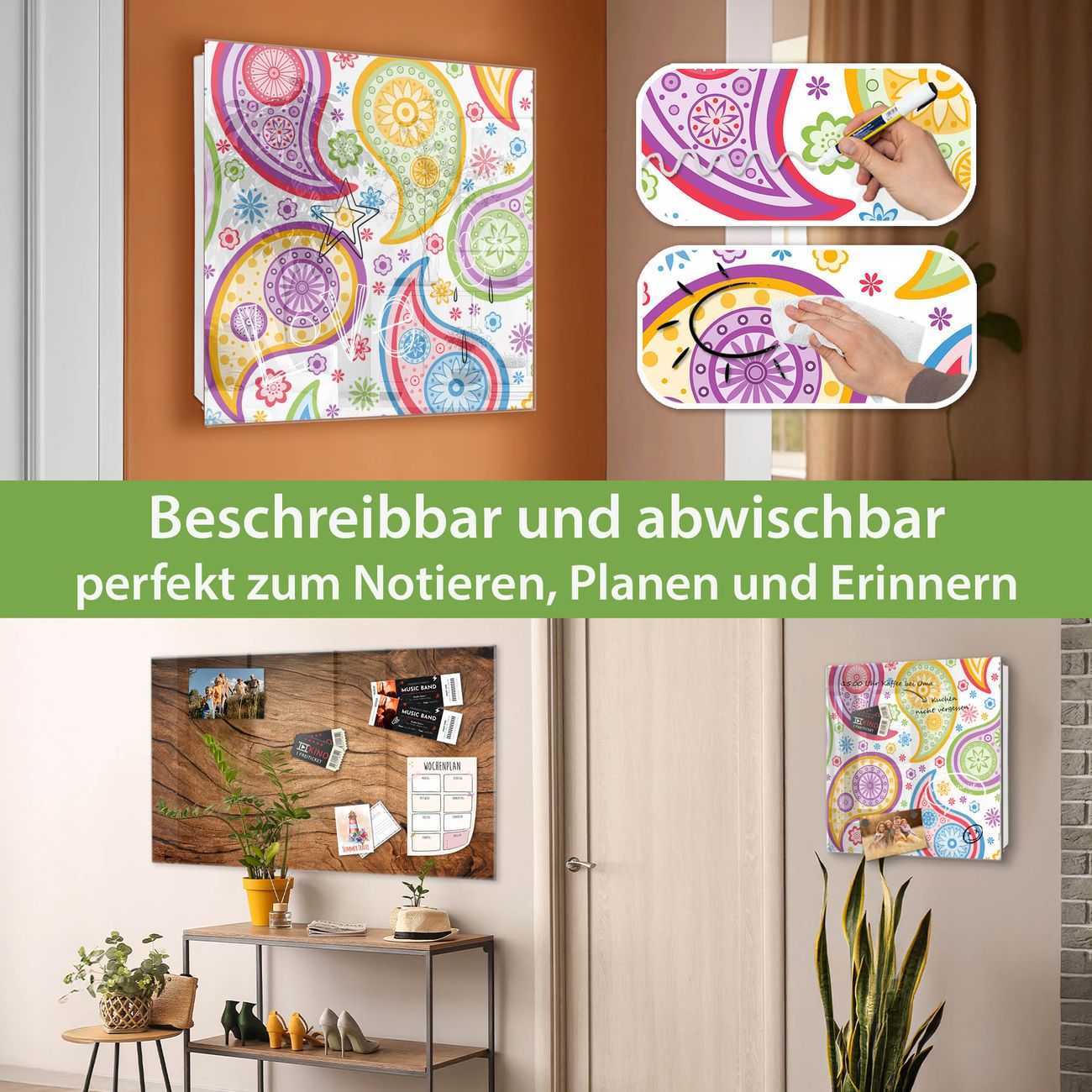 ✅ Magnetisch und mit Kreidestift beschreibbar, gehärtetes Glas, rechts angeschlagene TürOrdnung und Design in einem