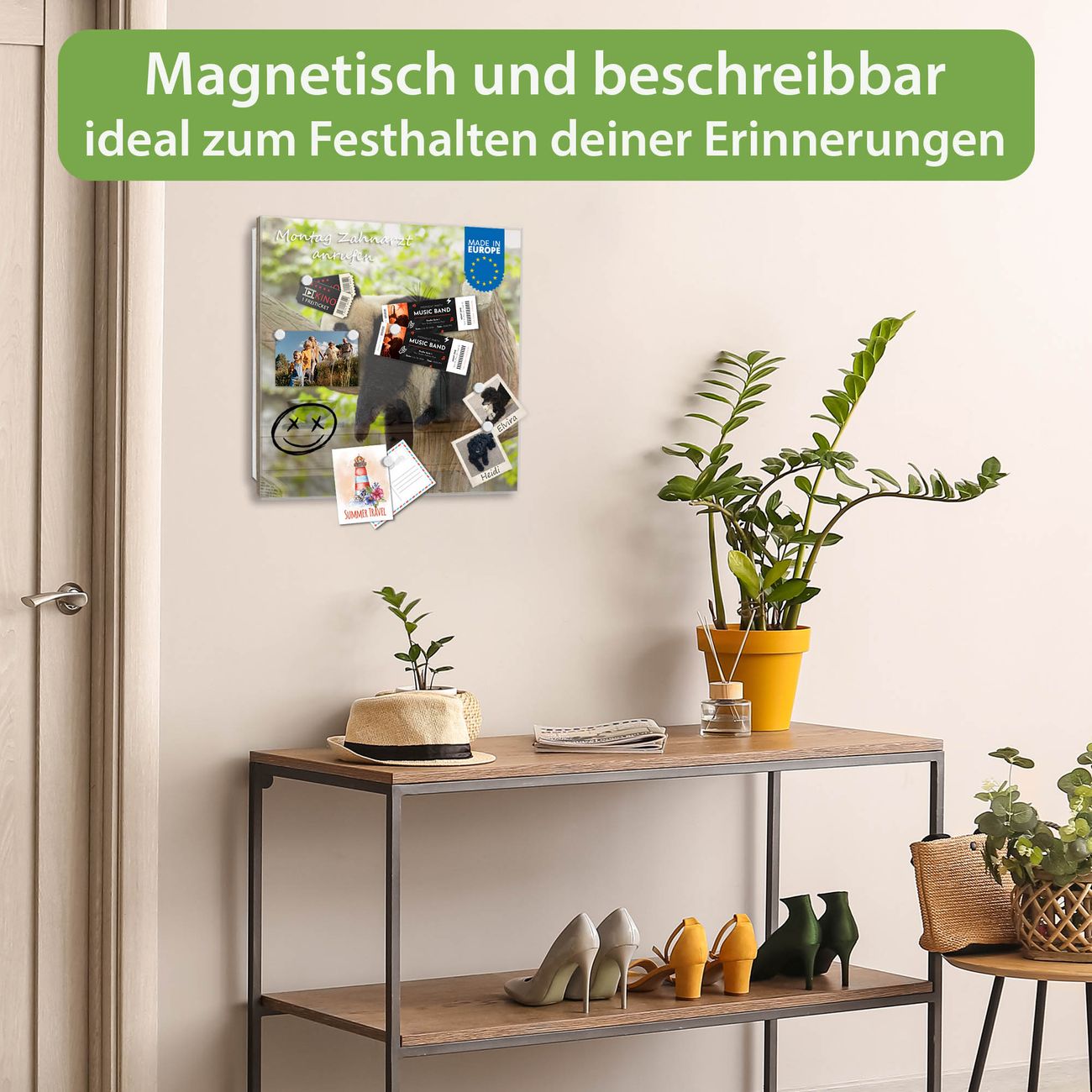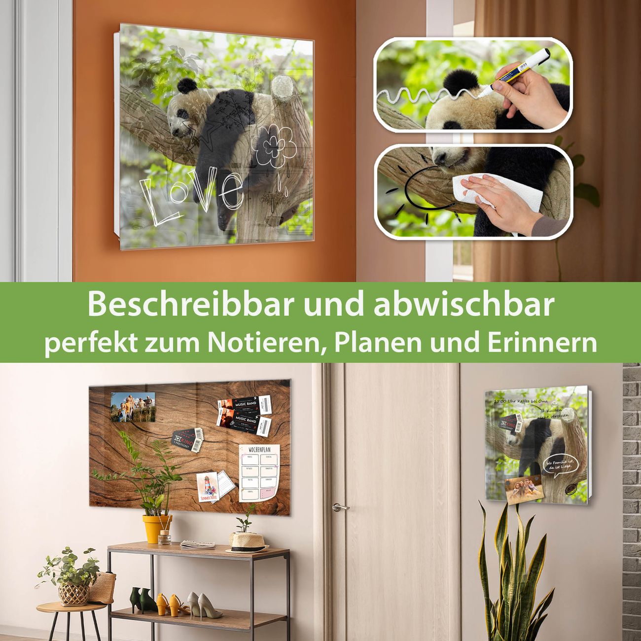 ✅ Magnetisch und mit Kreidestift beschreibbar, gehärtetes Glas, links angeschlagene TürOrdnung und Design in einem