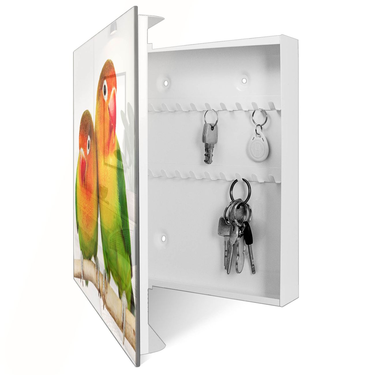Schlüsselkasten Glas Motiv Papageien