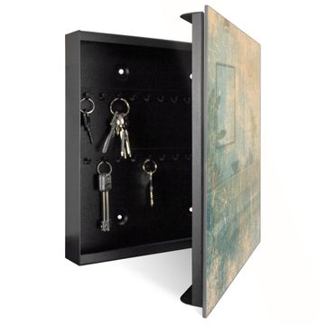 Bringe Ordnung und Eleganz in deinen Eingangsbereich mit dem banjado Schlüsselkasten Motiv Motiv Patina Grün. Die moderne Schlüsselbox kombiniert funktionales Design mit hochwertiger Verarbeitung und wird so zu einem echten Hingucker in Flur, Büro oder Ferienwohnung. ✅ Stilvolle Schlüsselaufbewahrung mit Glasfront im Motiv Motiv Patina Grün Der Design-Schlüsselkasten Motiv Motiv Patina Grün bietet Platz für bis zu 50 Schlüssel, die auf 5 stabilen Reihen mit je 10 Haken übersichtlich verstaut werden. Mit seinen kompakten Maßen von 30 x 30 x 5 cm passt die Schlüsselbox perfekt auch in kleinere Räume. Der schwarz lackierte Stahlkorpus mit rechts angeschlagenem Türscharnier harmoniert mit der Glasfront und fügt sich nahtlos in jedes Wohnambiente ein. Ob als Schlüsselorganizer für Zuhause oder als praktische Lösung für Büros, Praxen und Gewerbe, der banjado Schlüsselkasten sorgt für Ordnung und Übersicht. Dank der magnetischen, mit Kreidestiften beschreibbaren Glasfront kannst du Notizen anheften oder Termine direkt auf der Oberfläche festhalten. Die Schlüsselbox Motiv Motiv Patina Grün zur Wandmontage wird inklusive Befestigungsmaterial geliefert und ist schnell angebracht. So hast du deine Schlüssel jederzeit griffbereit und zugleich stilvoll verstaut. Mit diesem banjado Schlüsselkasten Motiv Motiv Patina Grün kombinierst du praktische Aufbewahrung mit stilvollem Wohndesign. Ob privat oder geschäftlich, die Schlüsselbox sorgt für mehr Ordnung, Übersicht und ein wohnliches Ambiente.Vorteile im Überblick